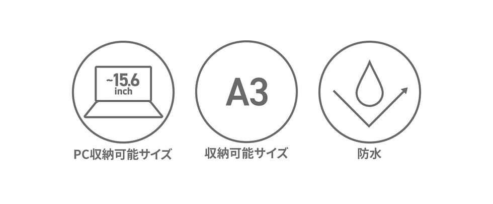 | 仕様 | <外側> ジップポケット(L)×1 ポケット(S)×2 <内側> PC収納×1 ジップポケット(S)×1 ポケット(S)×1 |