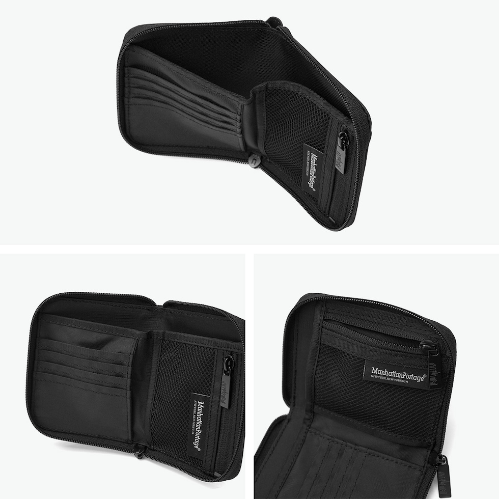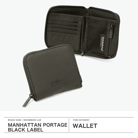 【日本正規品】 マンハッタンポーテージブラックレーベル 二つ折り財布 メンズ レディース Manhattan Portage BLACK LABEL 財布 ラウンドファスナー 小銭入れ付き 軽量 CORNER WALLET VEG LEATHER MP1037VGLBL