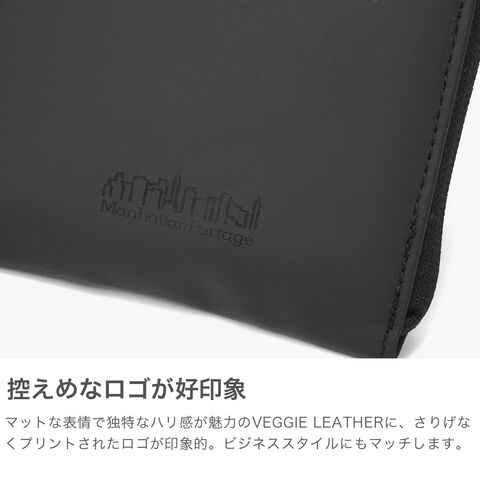 携帯しやすいサイズ感 人気素材のVEGGIE LEATHERを使用したコンパクトで携帯しやすいサイズ感の二つ折り財布。スカイラインをさりげなくプリントしたロゴデザインもポイント。オンオフ兼用できるスマートなデザインで、どんな服装にもなじんでくれます。 |