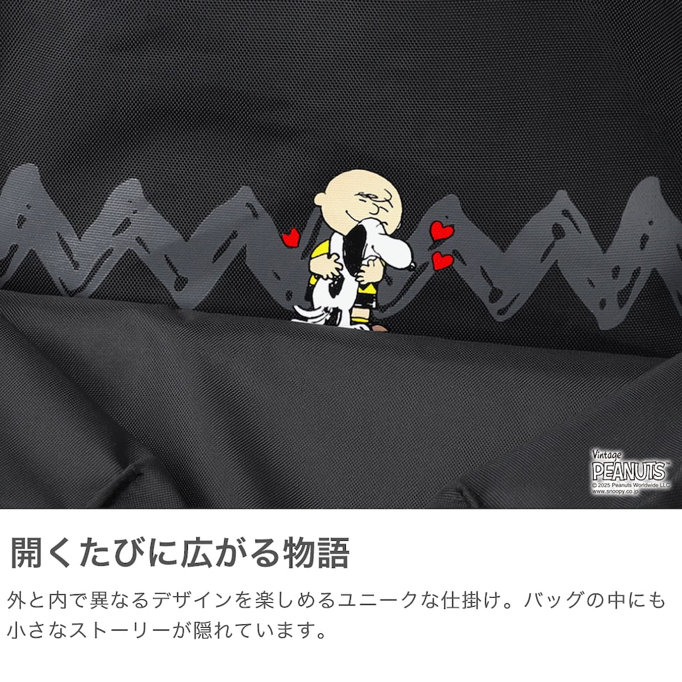 | 細部まで心躍る可愛さ 注目のコラボリュック 多くの人々を魅了し続ける『PEANUTS』とのコラボレーションコレクションから、デイパックが登場。今作はチャーリー・ブラウンとスヌーピーの2ショットをメインアートに採用し、外側と内側のデザインでストーリーが展開される、クリエイティブな仕上がりとなっています。さらに、チャーリー・ブラウンを象徴する「ジグザグ模様」や、コミック内のセリフの刺繍など、遊び心あるディティールもポイントです。 |