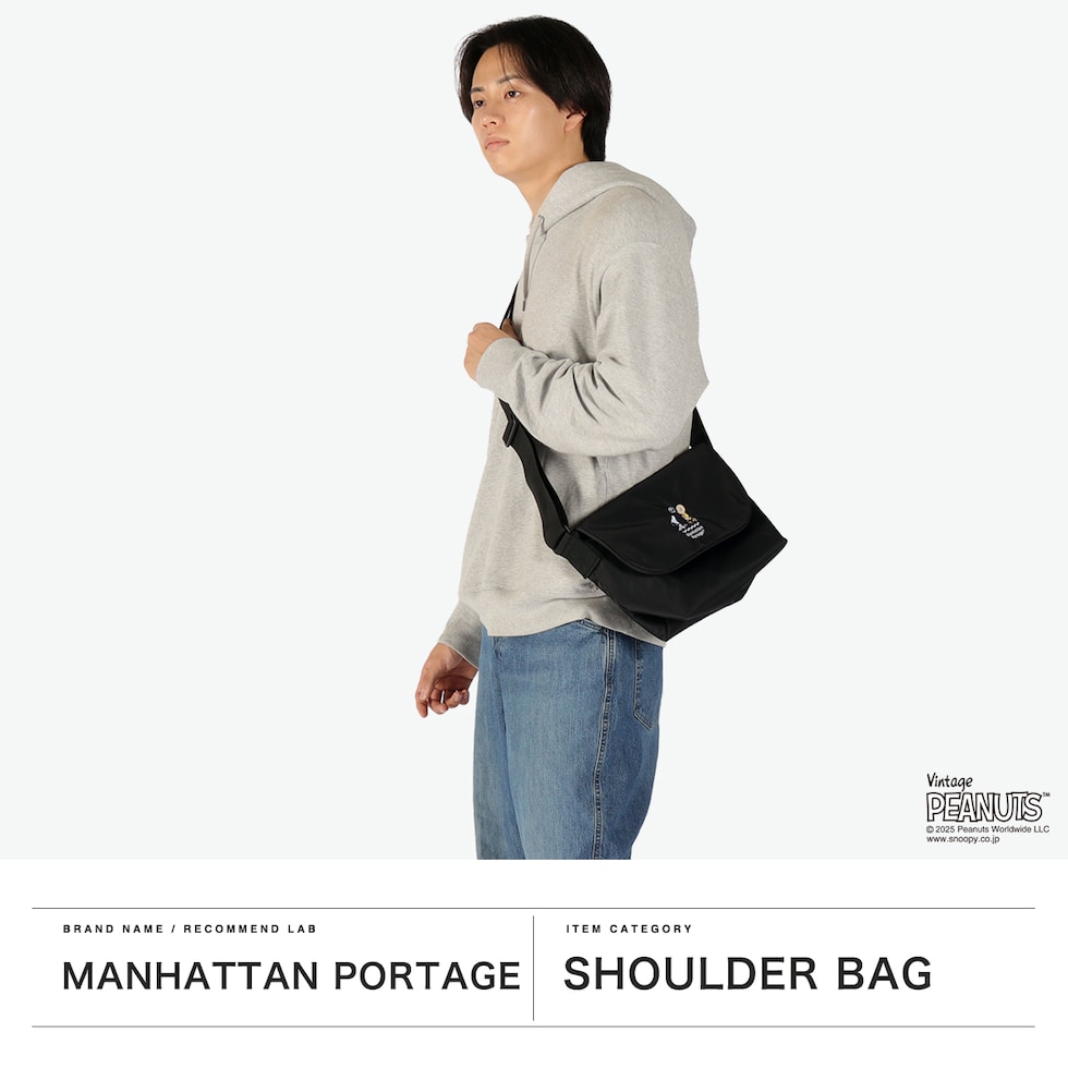 【日本正規品】 マンハッタンポーテージ ショルダーバッグ メンズ レディース Manhattan Portage スヌーピー 小さめ 斜めがけ ブランド コラボ B5 PEANUTS 25 CASUAL MESSENGER SLIM BP W MP1605JRSBPDMGNTPNS25