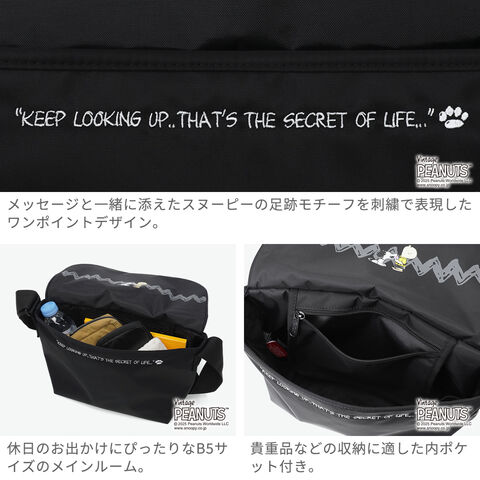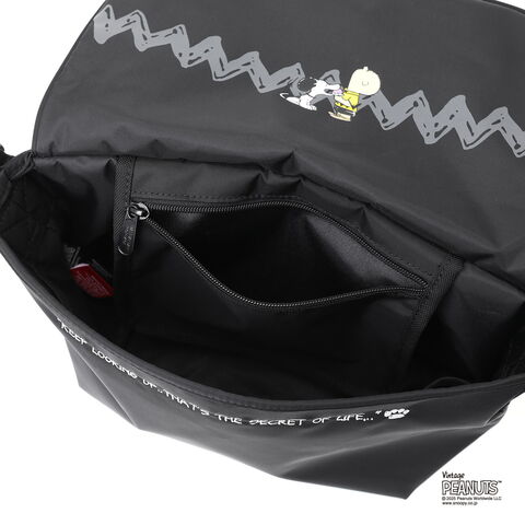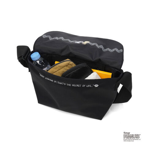 | 遊び心を散りばめた スヌーピーコラボ 多くの人々を魅了し続ける『PEANUTS』とのコラボレーションコレクションから、メッセンジャーバッグが登場。今作はチャーリー・ブラウンとスヌーピーの2ショットをメインアートに採用し、外側と内側のデザインでストーリーが展開される、クリエイティブな仕上がりとなっています。さらに、チャーリー・ブラウンを象徴する「ジグザグ模様」や、コミック内のセリフの刺繍など、遊び心あるディティールもポイントです。 |