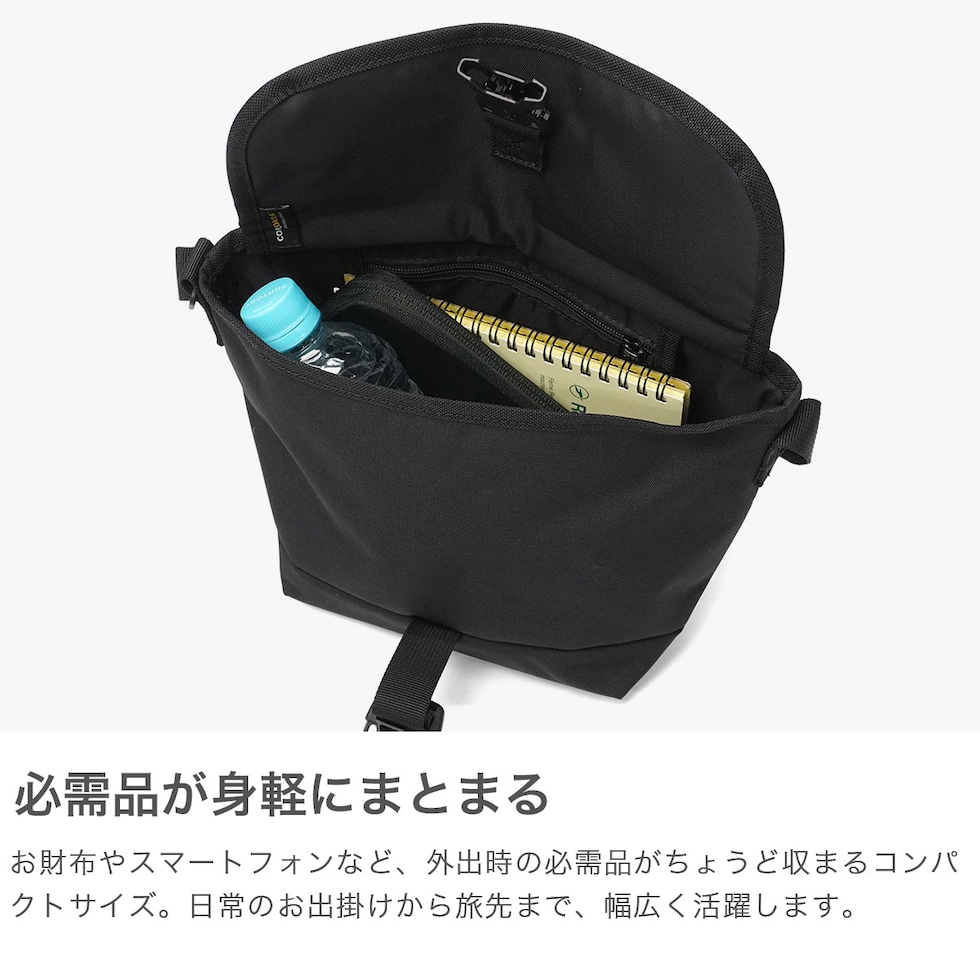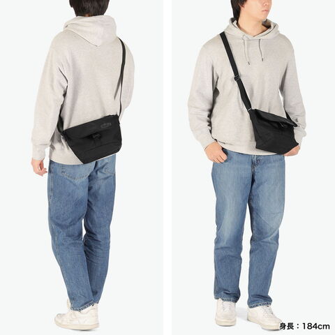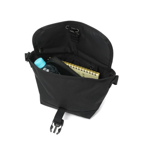 洗練された印象の素材感 細かい生地目がスタイリッシュな印象のメッセンジャーバッグ。CORDURA HP(ハイパフォーマンスポリエステル)をメイン素材で採用し、ターポリンビニールもパネル使いすることで、高い防水性を実現しました。フラップ部分には視認性を高めるリフレクティブプリントを採用した、シックなデザイン。コンパクトサイズで、ちょっとした外出にぴったりのアイテムです。 |