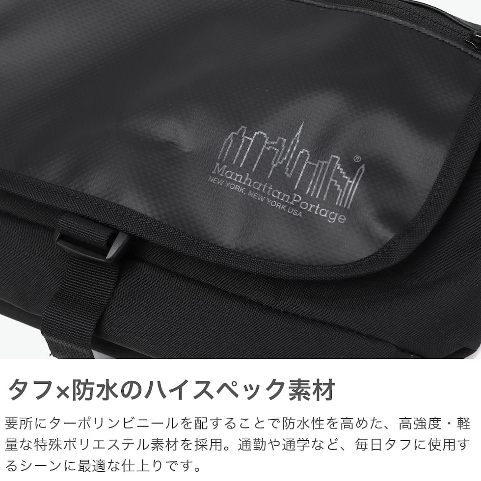 【日本正規品】 マンハッタンポーテージ メッセンジャーバッグ 斜めがけ Manhattan Portage ショルダーバッグ ブランド 軽量 黒 B5 Messenger Bag JR Flap Zipper Pocket W/Divider MP1605JRFZPDHPWP