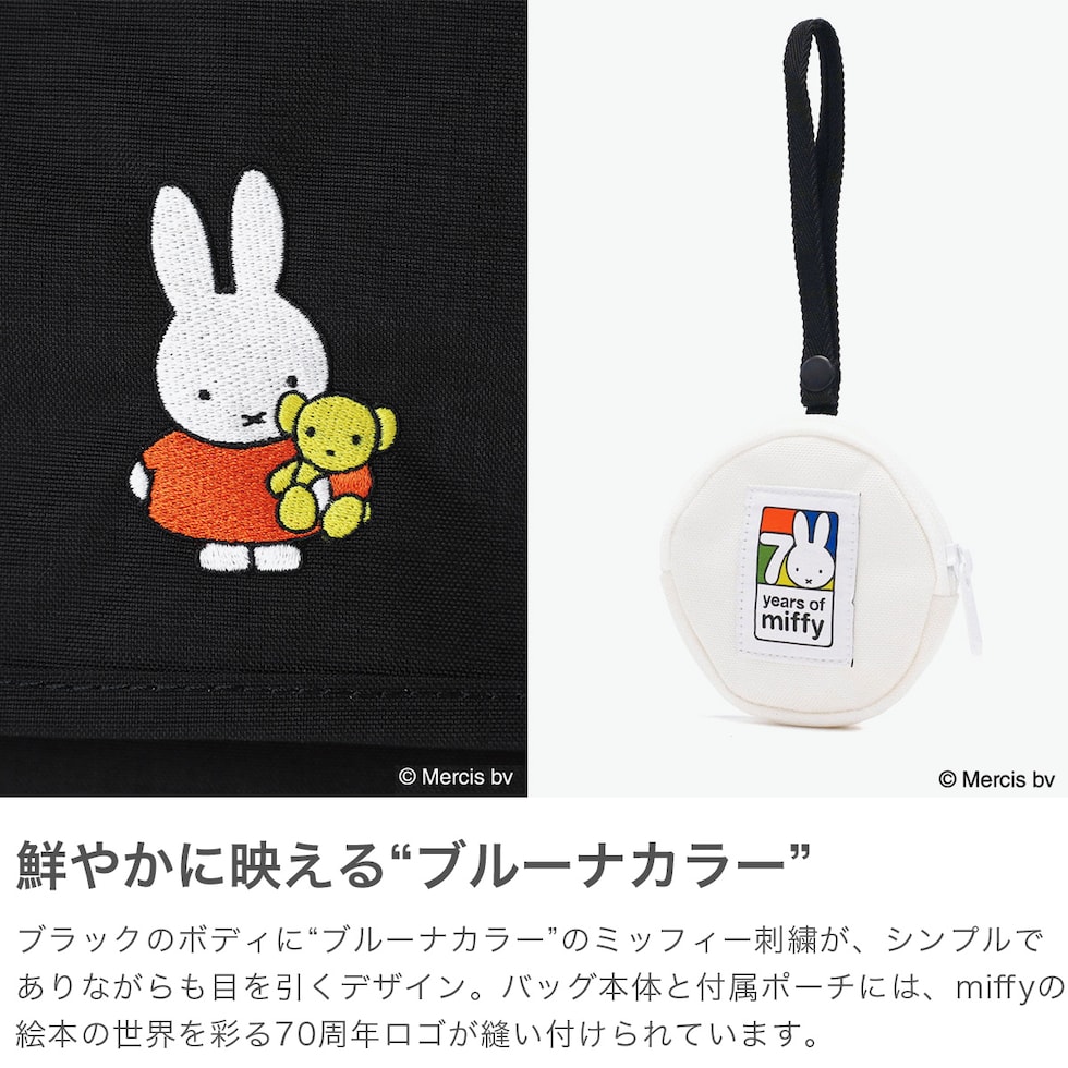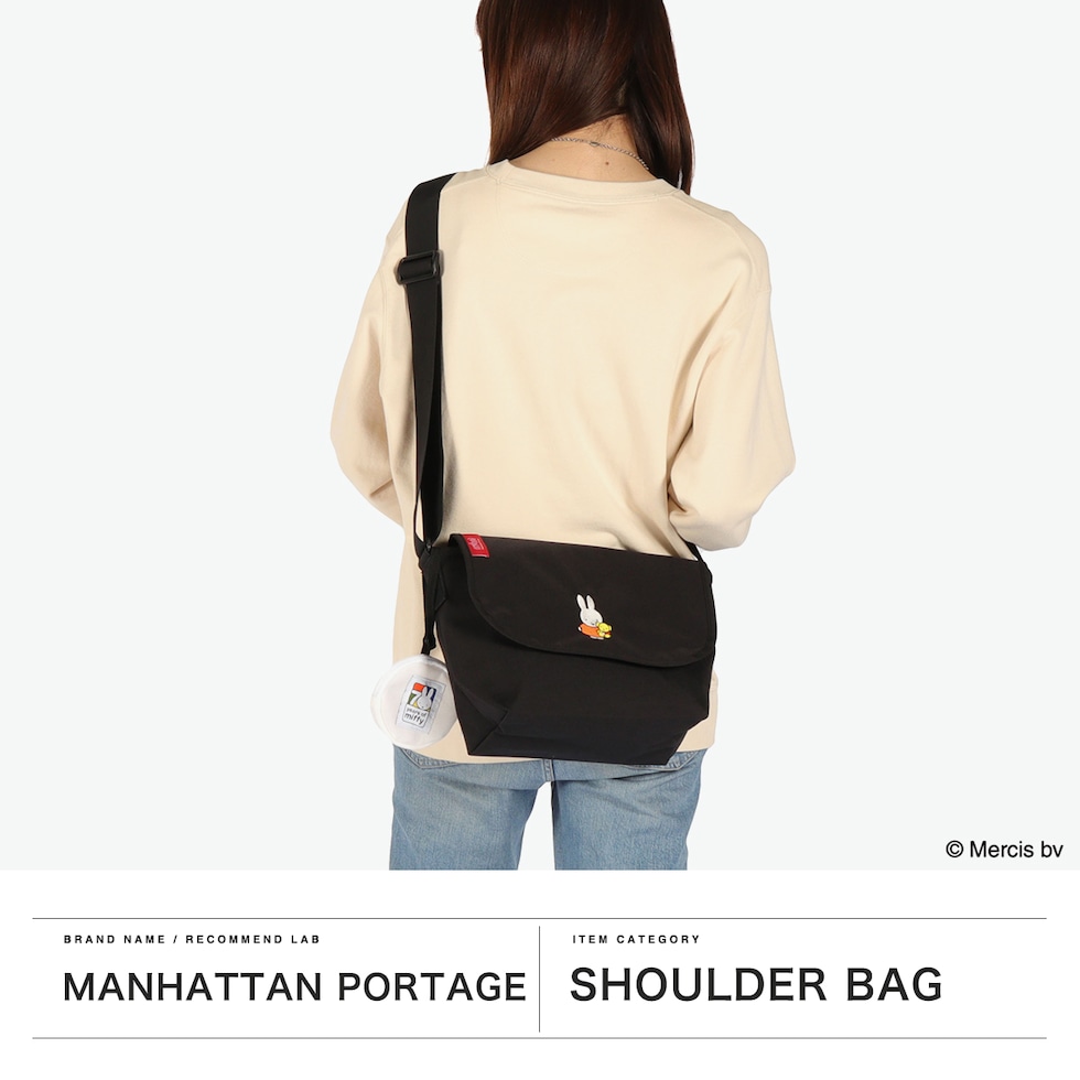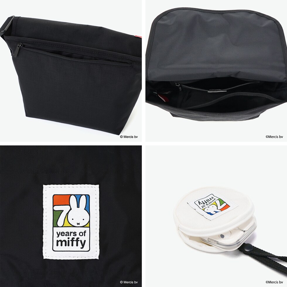 一緒にお出かけに出発! 2025年に誕生70周年を迎えるオランダ生まれの世界的人気キャラクター『miffy』とのコラボレーションコレクション第2弾が登場しました。Manhattan Portageの定番ブラックボディに“ブルーナカラー”が鮮やかに映える、刺繍のワンポイントが目を引く可愛らしいデザイン。Miffy70周年ロゴを配したポーチ付きで、節目にふさわしいスペシャルな企画になっています。 |