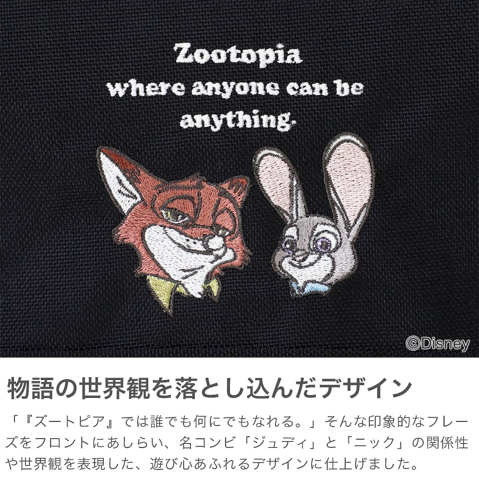| 大人気ズートピアとの 特別なコラボモデル! 映画『ズートピア』の人気キャラクターをデザインした特別仕様のショルダーバッグが登場!物語に登場する名コンビ「ジュディ」と「ニック」の関係性や世界観を表現した、遊び心あふれるデザインに仕上げました。足跡刺繍やフラップ裏のフォトプリントなど、ファンにはたまらないディテールが満載のアイテムです。 |