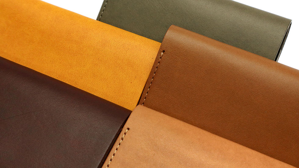 black、red、blueの素材にはイタリア製タンニン鞣し革「ブッテーロ」を使用。まさにイタリアといった艶っぽく彩度の高い発色が特徴的で、透明感のある仕上げにより革本来の風合いを残しています。繊維密度の高いショルダー革を使用し、しなやかさと丈夫さを兼備。使い込むにつれて艶が増し色味も深くなります。