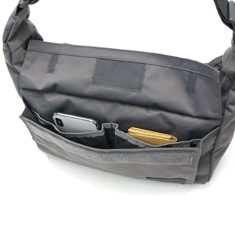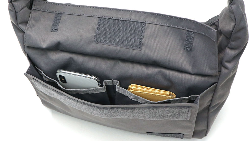 フロントには大きめのベルクロポケットを配置。すぐに取り出したいアイテムをスムーズに取り出すことが可能なほか、内部に小分けポケットを備えているので小物類をすっきりとまとめます。また背面側にもジップポケットを備え、充実したアウトポケットで使い勝手の良いデザインとなっています。
