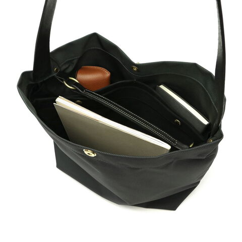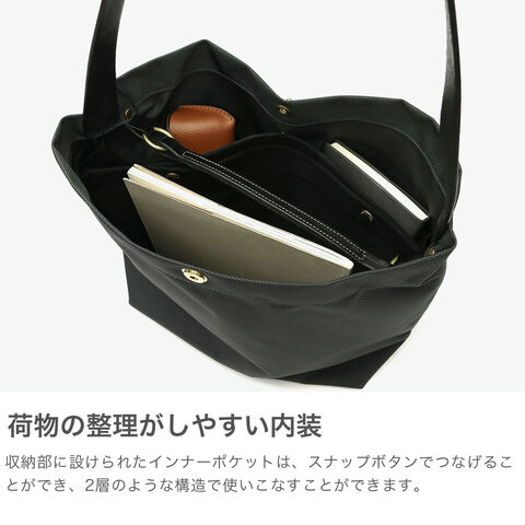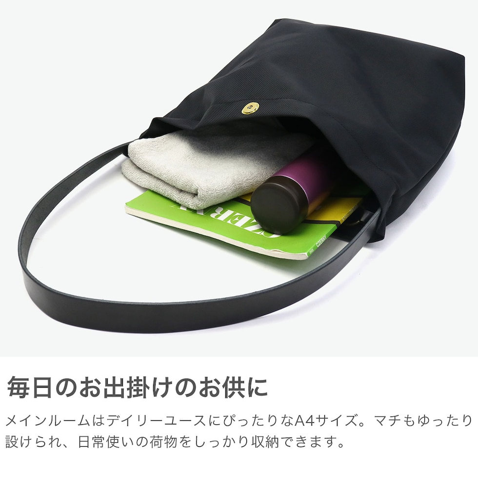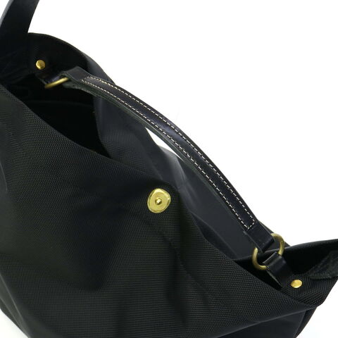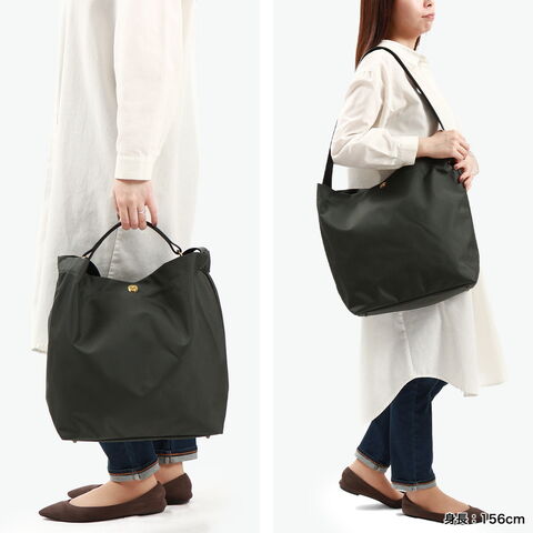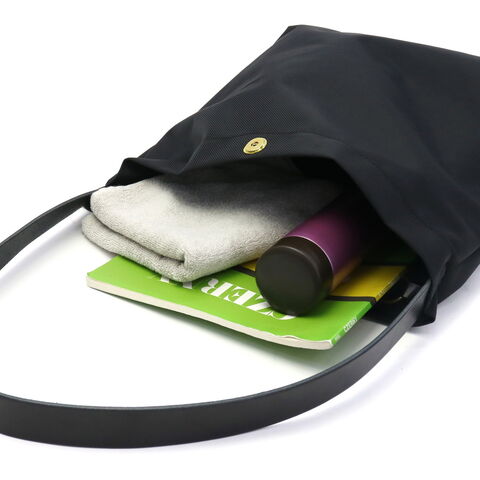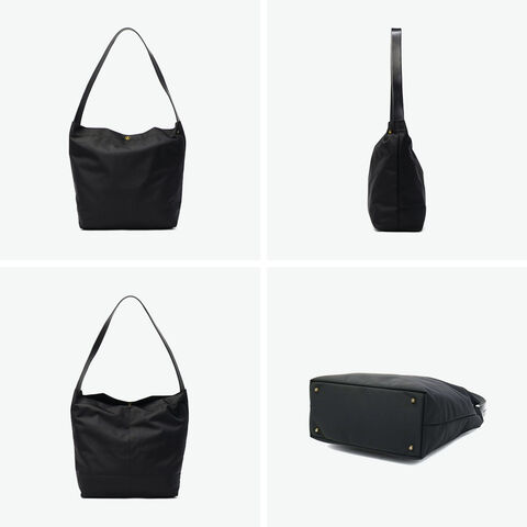スタイリッシュな佇まい 軽さと耐久性を兼ね備えた、こだわりを感じるナイロン生地のショルダーバッグ。デイリーに活躍する大きめのサイズ感で、荷物が多い日もスマートに収納できます。2本のレザーハンドルを備え、シーンやスタイルに合わせて持ち方を自由にアレンジ可能。ユニセックスでお使いいただけるシンプルかつ上品なデザインに仕上がっています。 |