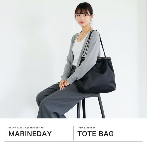 マリンデイ トートバッグ レディース ブランド MARINEDAY 軽量 軽い 旅行 ナイロン シンプル カジュアル おしゃれ 上品 大人 横型 無地 2WAY 肩掛け 斜めがけ B5 日本製 66NYLON×姫路レザー LEAF