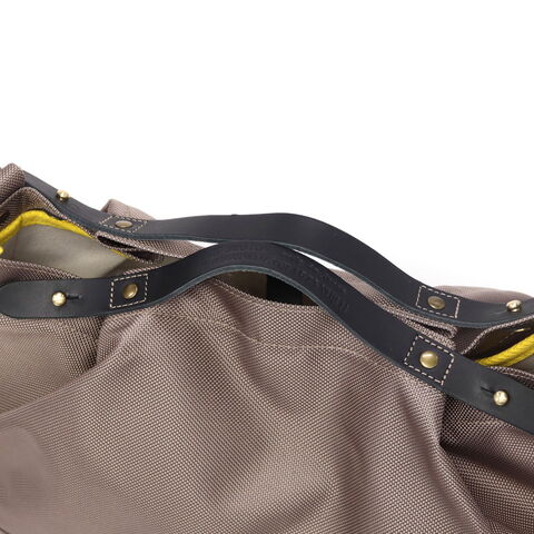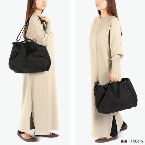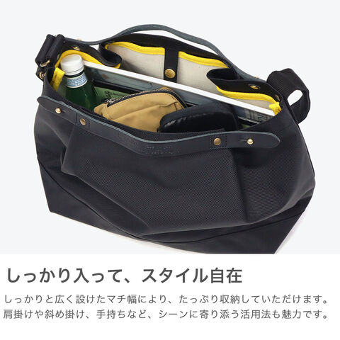 丈夫な66ナイロンと姫路レザーを組み合わせた、上品で機能的な横型トート。B5サイズが収まる実用的なサイズ感で、カジュアルにもきれいめにもマッチするデザイン。普段使いから旅行まで幅広く活躍します。