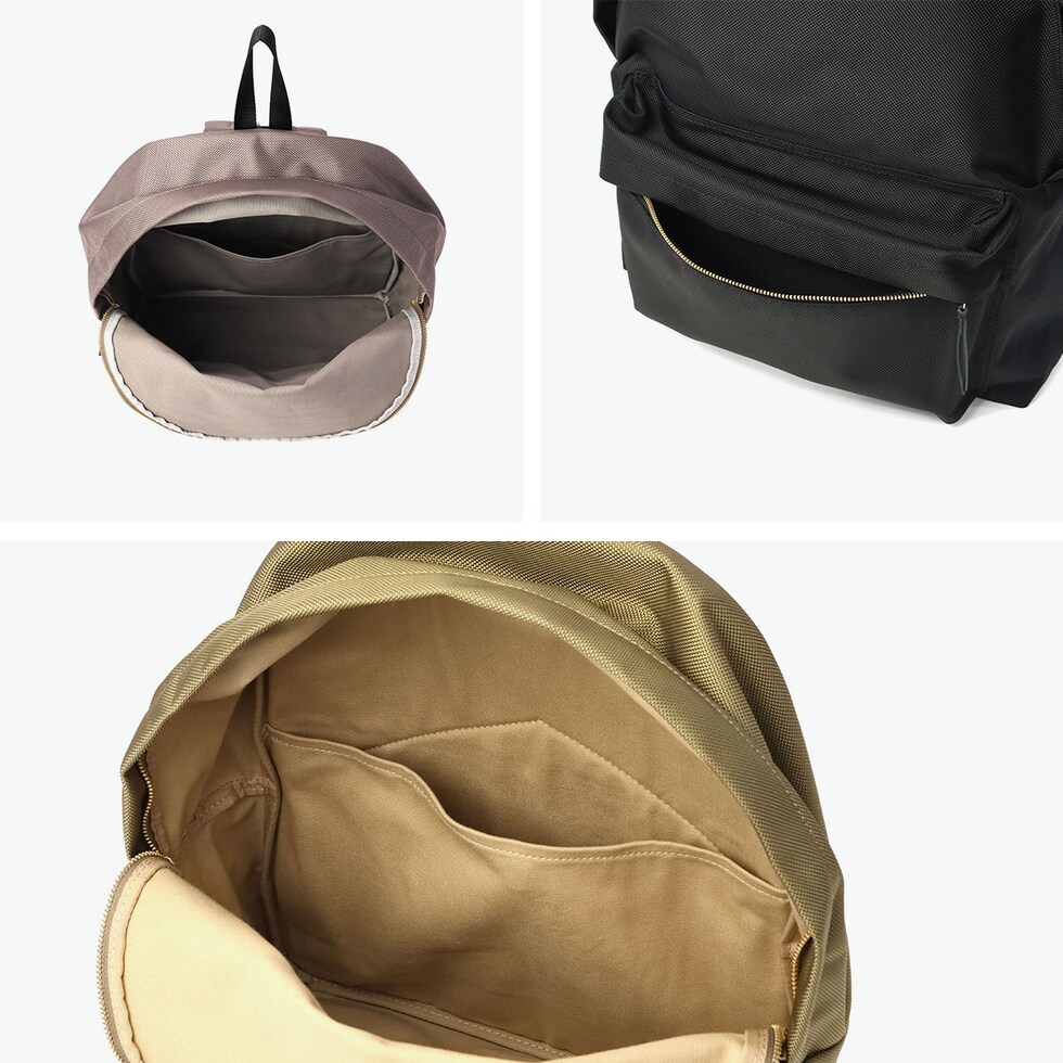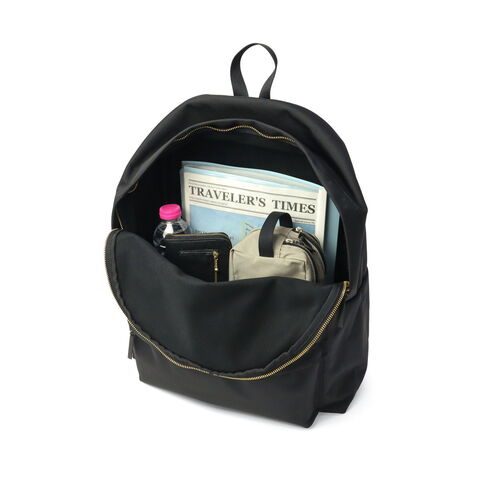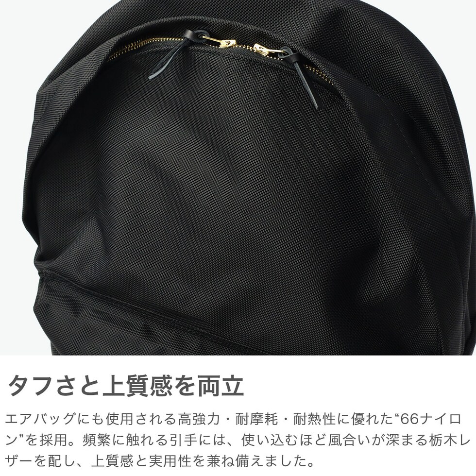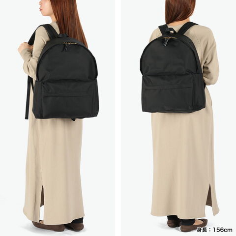丈夫&大容量リュック 厚手で上質さ漂う66ナイロンと姫路レザーを組み合わせた、日本製のMARINEDAYリュック。高強力・耐摩擦性に優れた素材で、毎日の通勤や旅行にも安心です。A4・B4サイズ対応の大容量ながら、部分的に本革を効かせた洗練されたシンプルデザインが、きれいめにもカジュアルにも好相性。大人の女性に似合う、多用途で上品なデイパックです。 |