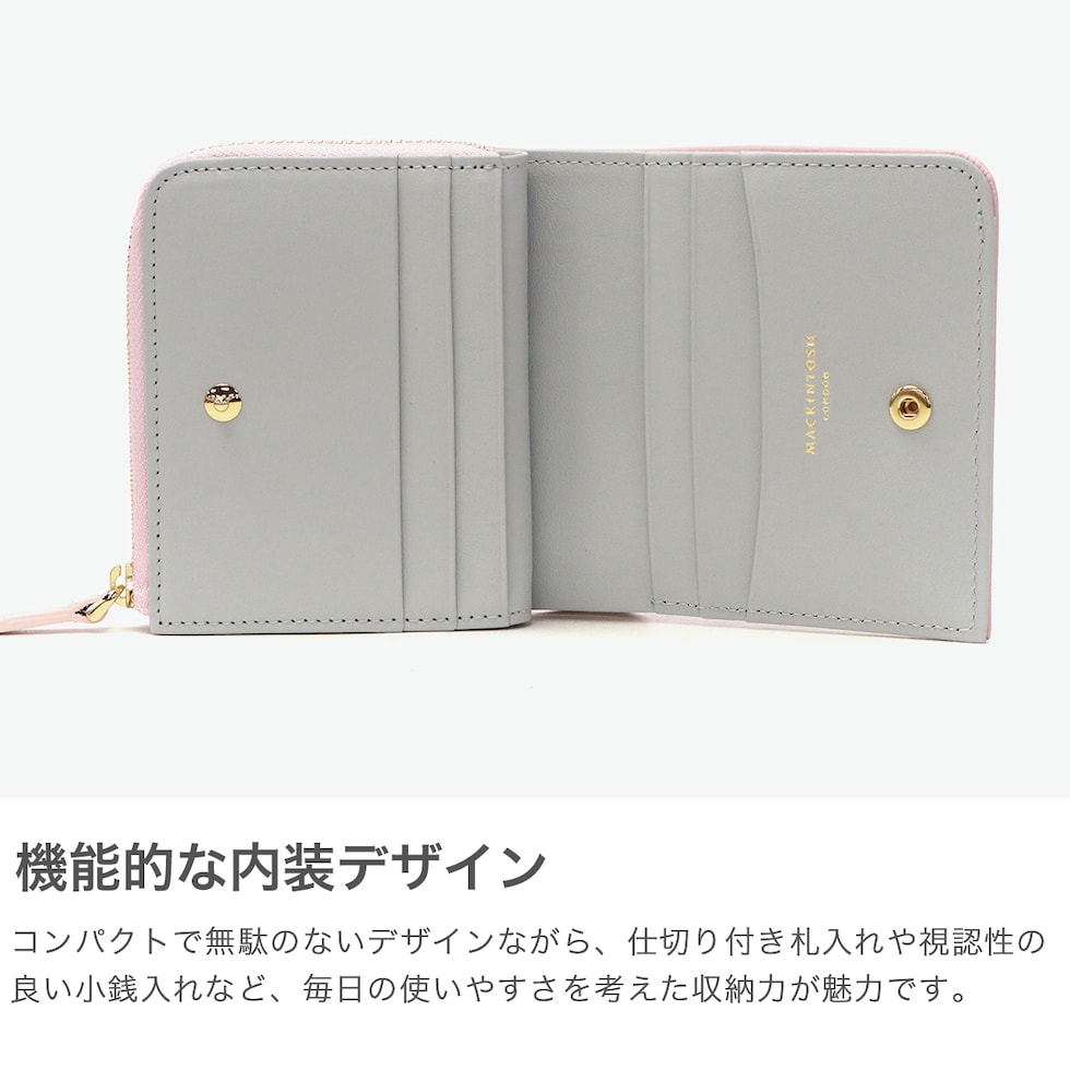 マッキントッシュ ロンドン 財布 レディース 二つ折り コンパクト MACKINTOSH LONDON 二つ折 ブランド おしゃれ ファスナー 小銭入れあり 革 本革 レザー 軽量 シンプル ロゴ サイフ 二つ折り財布 EM MKL5060124