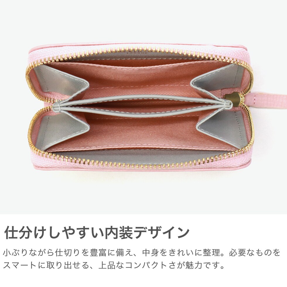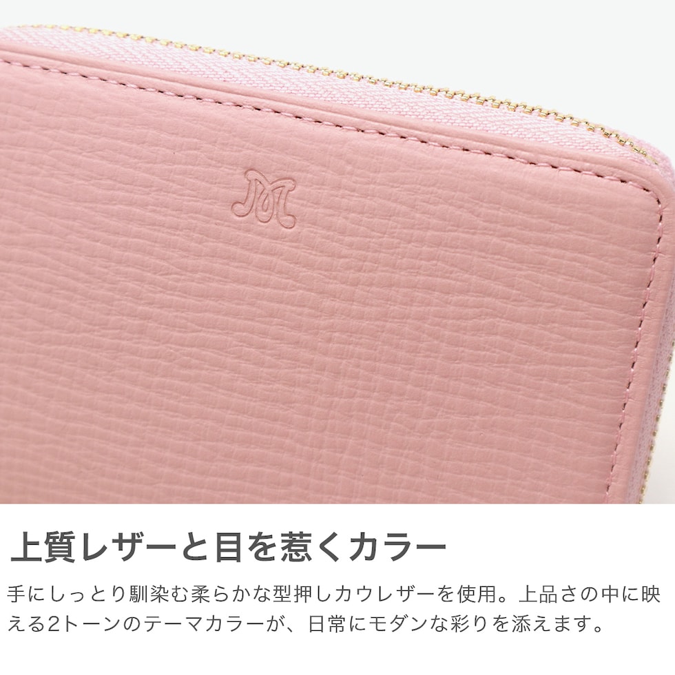 内装の色使いに注目! マッキントッシュロンドンのイニシャルロゴを使用した『EM』シリーズのコインケース。内部はセンターに仕切りがあり収納部が別れているため、カードや小銭の仕分けや出し入れがしやすい設計。手元を明るく見せてくれるパステルカラーを採用し、優しく爽やかな雰囲気を演出します。外装と内装で異なるカラーを組み合わせることで開いた時のイメージが変わり、より印象的なアイテムとなっています。 |