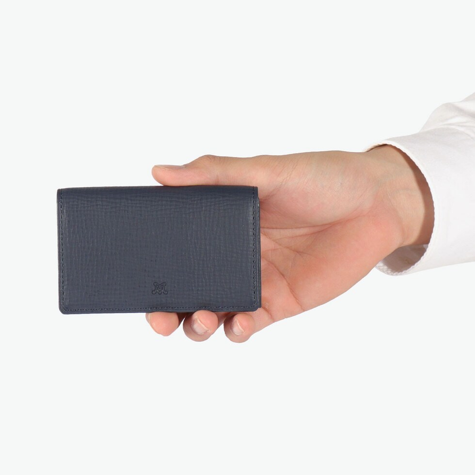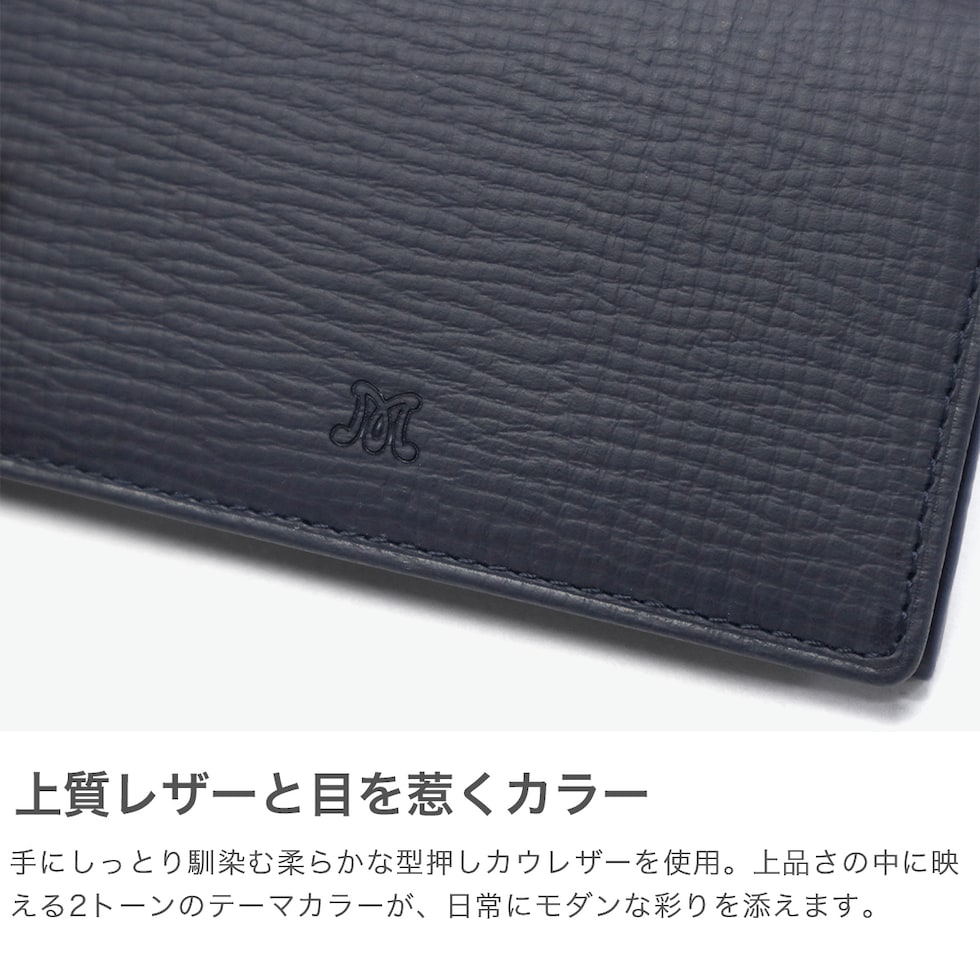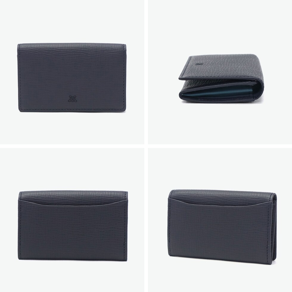 二色の彩りで上品に マッキントッシュロンドンのイニシャルロゴを使用した『EM』シリーズの名刺入れ。傷などが目立ちにくい型押しで、張りはありながらもソフトなタッチで手にフィットします。シックな色合いと英国調の内装のバイカラーをポイントに、コンパクトで現代的なデザインに仕上げました。 |