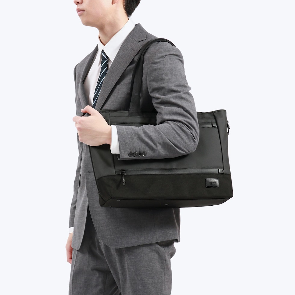 シンプルながらも多様な収納スペースを備えた「トロッターバッグV」の15L容量のトートバッグ。ハードユースに耐える丈夫な生地で、毎日の通勤や出張に最適です。また、肩掛けもできる長めのハンドルや、小物類の整理に便利なポケットを豊富に配置するなど、充実の機能でビジネスシーンにはもちろんのこと、オンオフ問わず活躍してくれるデザインです。