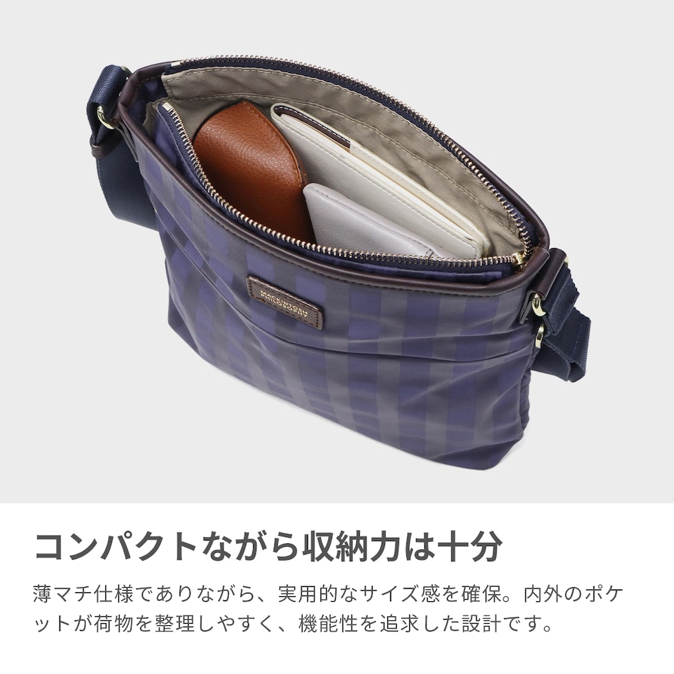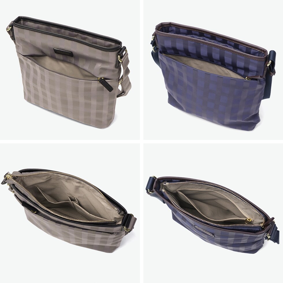 | 艶やか素材で上品に 大人映えするチェック スタイルを選ばない、シンプルで上品なレディーストラベルシリーズ『アメリア2』のショルダーバッグです。きれいめスタイルにも合わせやすいドビーチェック柄と、光沢感のある素材が大人の品格を演出。薄マチながら収納力に優れ、長財布もすっぽり収まる使いやすいサイズ感。カジュアルからきれいめまで幅広く活躍するアイテムです。 |