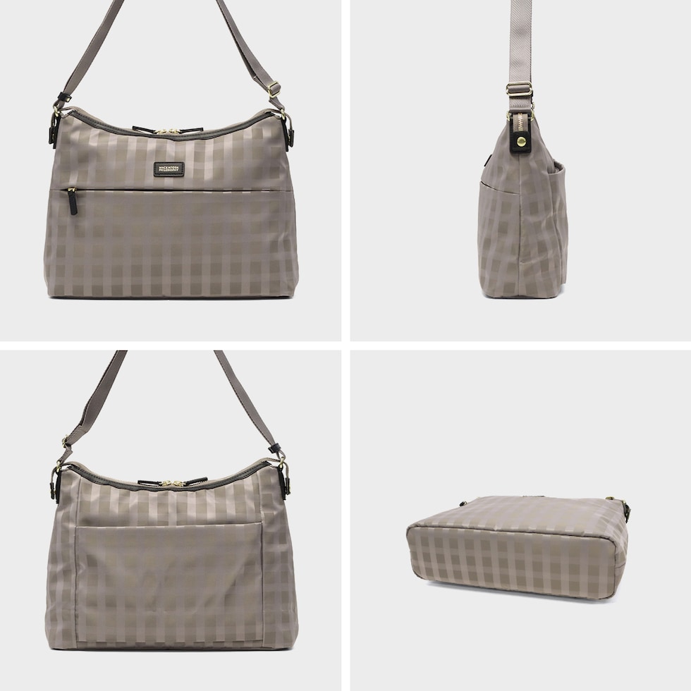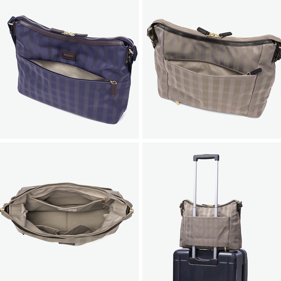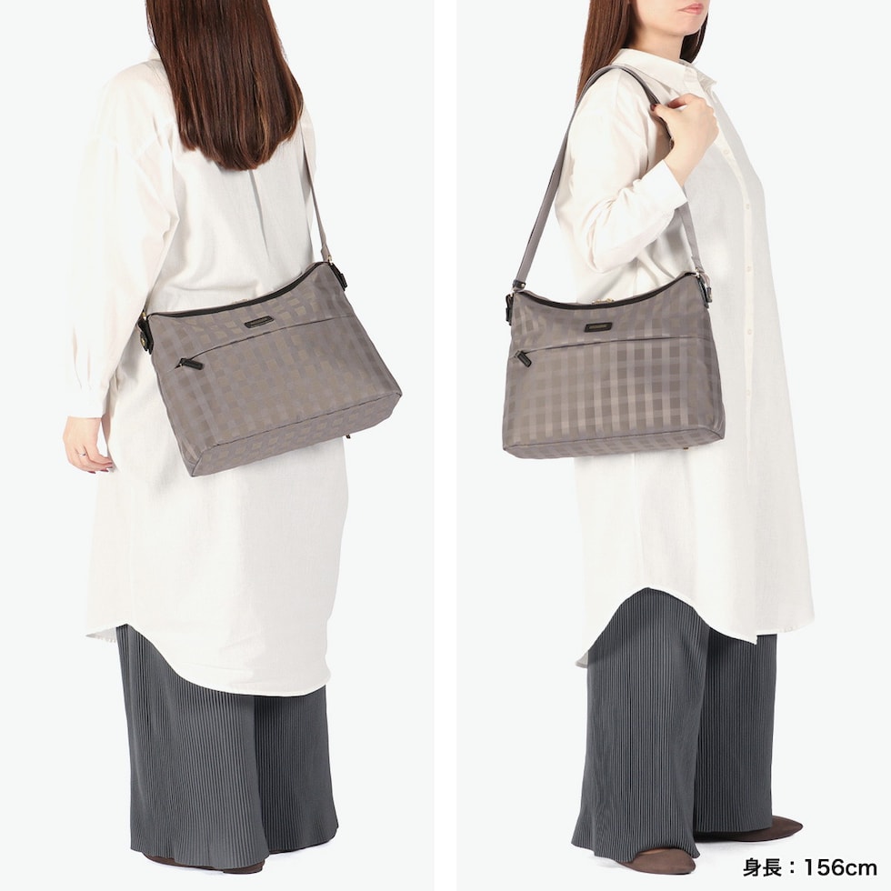 | 上品チェックが可愛い 大人に似合うバッグ スタイルを選ばない、シンプルで上品なレディーストラベルシリーズ『アメリア2』のショルダーバッグです。きれいめスタイルにも合わせやすいドビーチェック柄と、光沢感のある素材が大人の品格を演出。長財布や小さめガイドブックも入る、街歩き~観光まで使いやすいサイズ感。カジュアルからきれいめまで幅広く活躍するアイテムです。 |