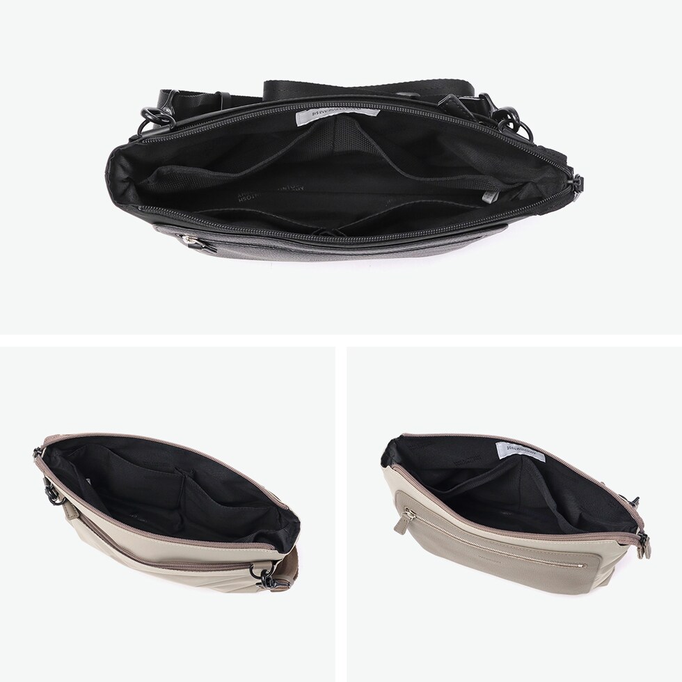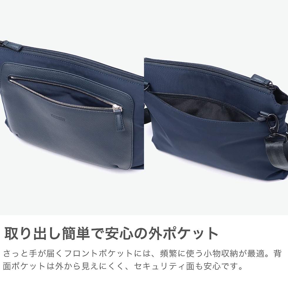 シーンを選ばない上品さ 長財布やスマホなどの身の回り品も入るコンパクトなサコッシュ。本体に光沢感のあるナイロン330クラシックツイル、フロント部分にソフトレザーを使用することでよりきちっとした印象に。カジュアルな装いはもちろん、きれいめスタイルにもマッチする上品な存在感のバッグです。 |