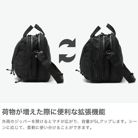 万能ビジネスバッグ シーンに合わせ手持ち、ショルダー、バックパックの3WAYで使用できる高性能ブリーフケース。容量が5Lアップできる拡張機能や、アイテム管理のしやすい構造による使い勝手の良さがポイントです。必要とされるスペックを網羅した、毎日の相棒に最適なアイテムとなっています。 |