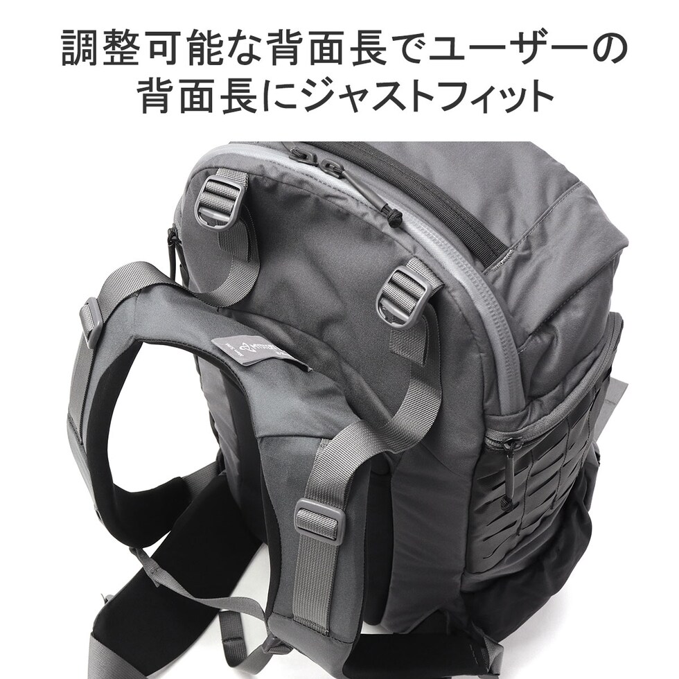 | ミリタリーなルックと 日常の利便性を融合 日常まで快適に機能的に使える32L容量のバックパック。ロングハイキングのためのギア、週末の遠出のための衣類や洗面用具、オフィスでの1日のための仕事用品を持ち運ぶのに最適です。調整可能な背面長とウェストベルトを備え、街からフィールドまで場所を選ばず活躍します。 |