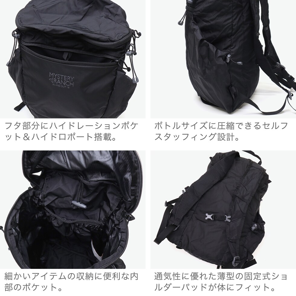 【日本正規品】 ミステリーランチ リュック メンズ レディース 大容量 ブランド MYSTERY RANCH リュックサック バッグ カジュアル スポーツ おしゃれ 旅行 大きめ 軽量 超軽量 撥水 A4 18L IN & OUT 18