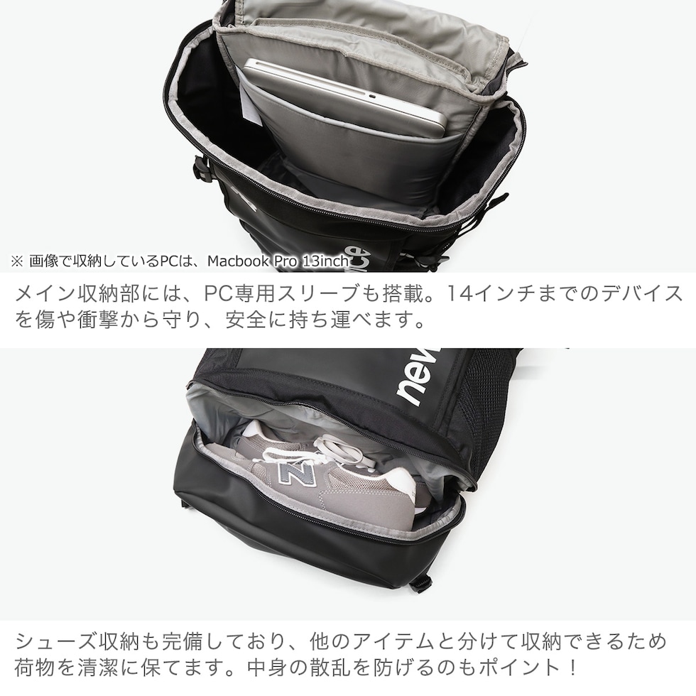ニューバランス リュック メンズ レディース 大容量 通学 ブランド New Balance 軽量 軽い ボックス型 おしゃれ 男子 女子 中学生 高校生 撥水 PC 14inch A4 B4 トップローディングバックパック 35L LAB55614