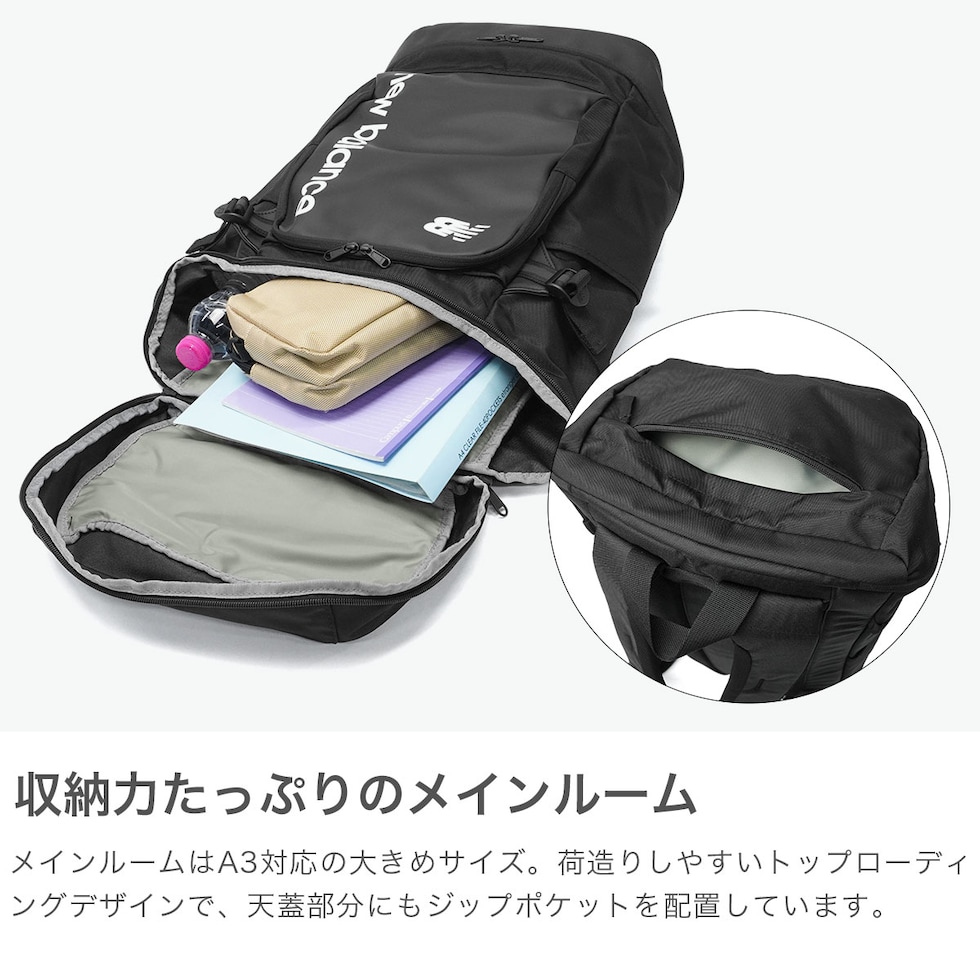 ニューバランス リュック 通学 大容量 new balance メンズ レディース 男子 女子 タブレット 中学生 高校生 ボックス型 軽い 撥水 カジュアル PC 軽量 40L A4 A3 トップローディングバックパック AC7580W