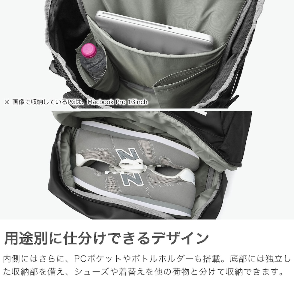 | 仕様 | <外側> ポケット×5 <内側> ポケット×2 PC収納×1 ボトルホルダー×2 |