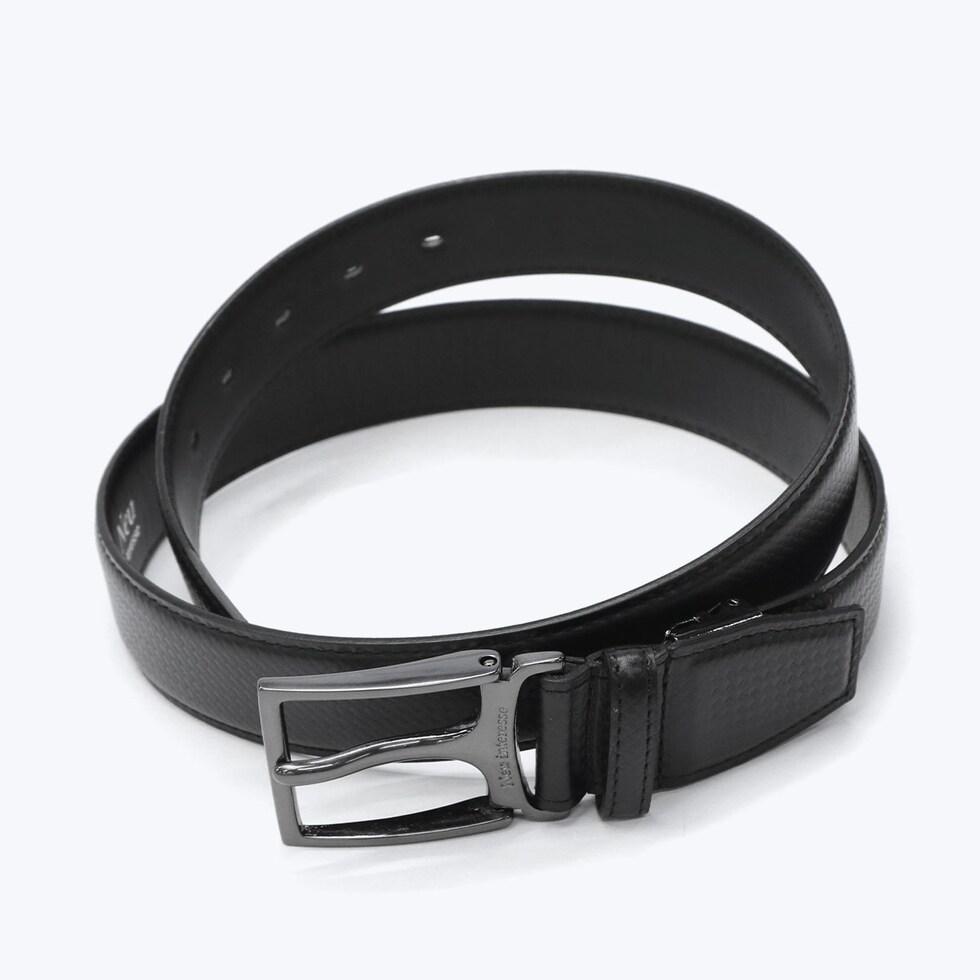 スタイリッシュで高級感のあるカーボンパターンを施したエンボスレザーを使用した、幅35mmのレザーベルト。傷が目立ちにくく、しなやかで柔軟性に優れた素材が体にしっかり馴染み、快適な着用感を提供します。スポーティかつモダンなデザインが特徴で、カジュアルからドレッシーなコーディネートまで、幅広いスタイルに美しく調和する一本です。