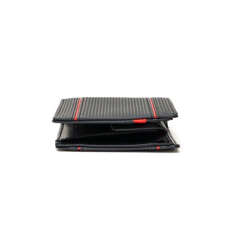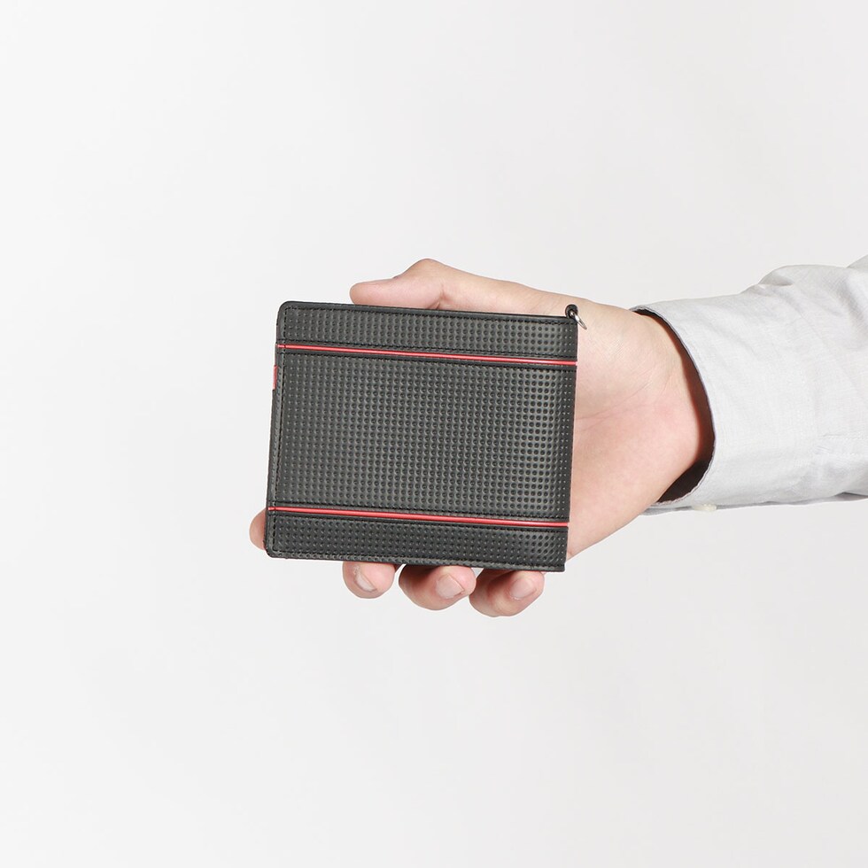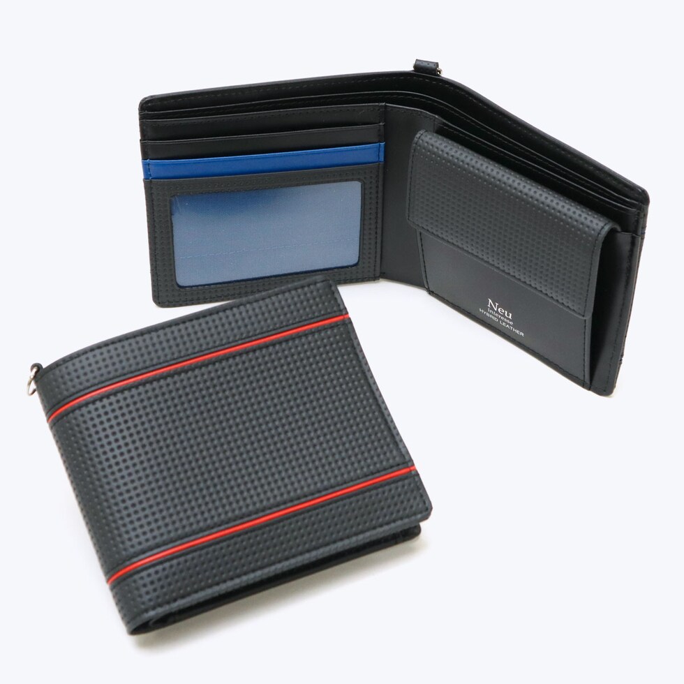 | タフでスタイリッシュな コンパクト二つ折り財布 2本のカラーラインがアイコンの「Lenkrad/レンクラッド」シリーズの二つ折り財布。本シリーズには、2000年代に自動車業界からの要望により、車のハンドル用として開発された素材を採用。車内の過酷な条件化でも耐えうるウレタン・エンボス加工が施されており、通常の染色革に比べ耐摩擦性、対光性、耐熱性などに優れています。 |