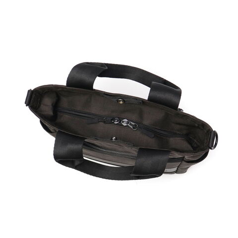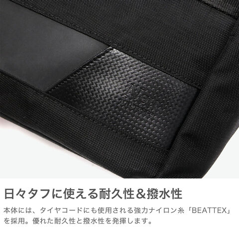 | 高い機能性を誇る 2WAYトートバッグ 主素材に「BEATTEX」を使用した『Geheimnis/ゲハイムニス』シリーズの2WAYトートバッグです。タイヤコードに使われる高強度ナイロン糸を採用し、特殊な製法で染色を可能にしました。通常のナイロンよりも高い撥水性と強度を実現し、機能性とデザイン性を両立。落ち着いたカラー展開も魅力で、幅広いシーンで活躍するアイテムです。 |