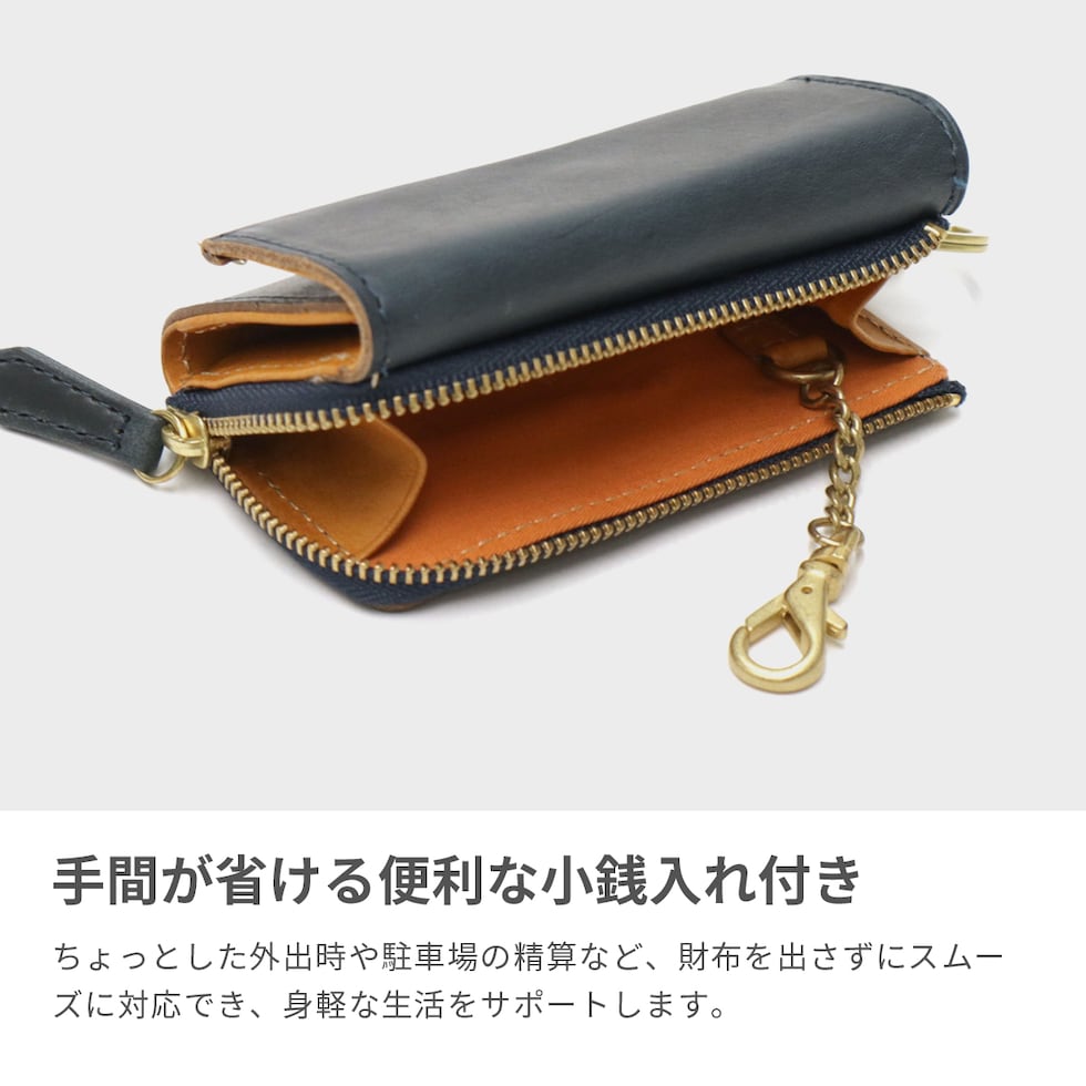 | 仕様 | <外側> 小銭入れ×1 └ 内蔵 キーホルダー×1 <内側> キーリング×1 キーフック×3 ポケット(S)×1 |