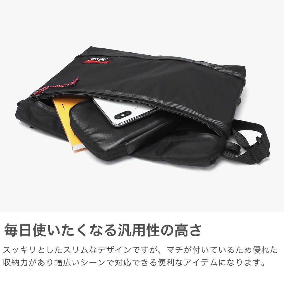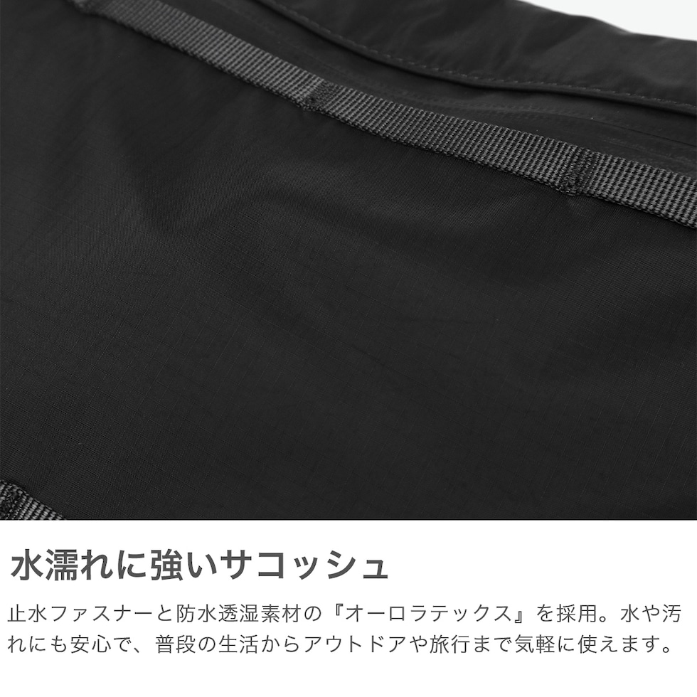 毎日使えるサコッシュ NANGA独自の『オーロラテックス』生地を使用した防水仕様のサコッシュ。止水ファスナーとマルチに使えるデイジーチェーンを施し、機能性をさらに高めています。防水透湿性素材を使用し、アウトドアライフはもちろん、軽いアクティビティにも最適でどんなコーディネートにも合わせやすくさまざまなシーンで気軽に使えるアイテムです。 |