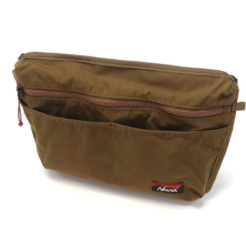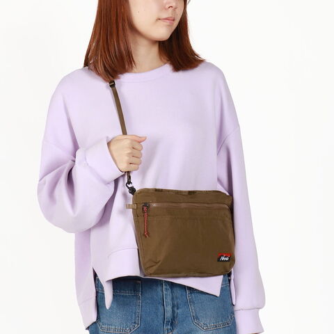 NANGA独自の『HINOC/ヒノック』生地を採用したサコッシュ。難燃性だけでなく、水や汚れにも強い機能性素材で、耐久性と防水性が求められるアウトドアやキャンプ時に活躍。ショルダーストラップは着脱可能となっており、ショルダーバッグとしてはもちろん、ジャケットやバッグに付けたりさまざまなシーンやスタイルに合わせてお使いいただけるアイテムです。