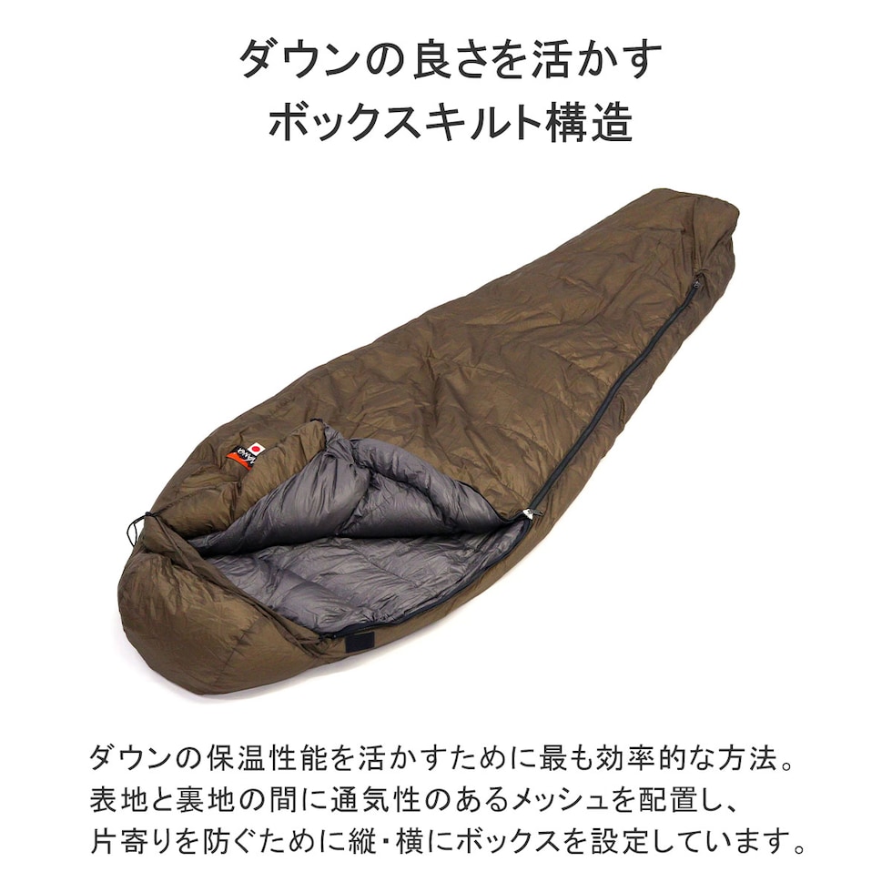 | 仕様 | <快適使用温度/下限温度> -4℃ / -11℃ <内部構造> ボックスキルト構造 <付帯機能> ショルダーウォーマー、ドラフトチューブ、チタンスパッタリング材 <付属品> 収納袋(小)×1 収納袋(大)×1 |
