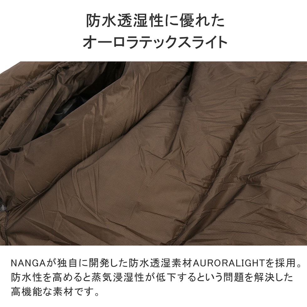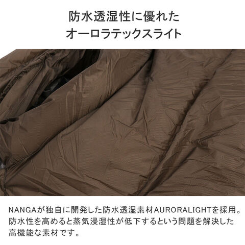 【永久保証】 ナンガ シュラフ 軽量 軽い コンパクト 冬用 ダウン 羽毛 NANGA 寝袋 スリーピングバッグ 寝具 持ち運び 登山 冬 おしゃれ キャンプ アウトドア マミー型 防水 防災 日本製 AURORA TEX light 900DX NS2443-2A007