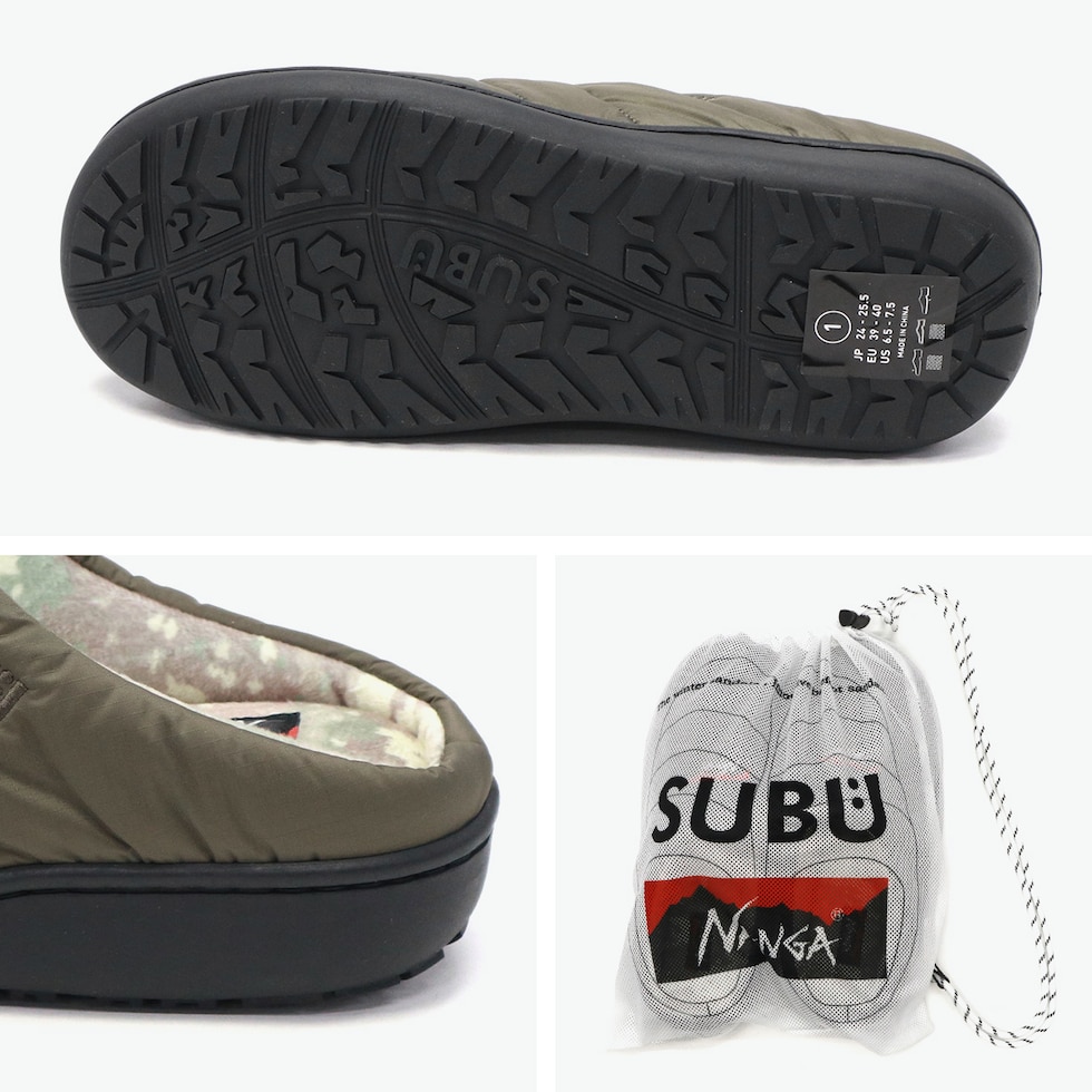 秋冬用サンダル "誰も知らない冬サンダル"をテーマに、寒い時期でも素足で履けるサンダルを展開する『SUBU/スブ』と技術を融合させたコラボ商品。NANGA独自の防水透湿素材「AURORA-TEX」を採用し、雨や雪からの濡れを防ぎつつ内部のムレを軽減。さらに、アブストラクトカモ柄の起毛加工により、内部の保温性を確保しています。4層構造のインソールが足をふかふかに包み込み、まるでスニーカーやルームシューズのような極上の履き心地を実現。アウトドアにはもちろん室内履きとしても活躍する、これまでにない秋冬用サンダルになっています。 |