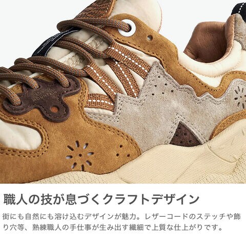 | コラボだから実現した ブランドの世界観の融合 NANGA×FlowerMOUNTAINのコラボデザインスニーカー『YAMANO3』。FlowerMOUNTAINが積み重ねてきたアーバンとアウトドアが融合した世界観をストレートに表現したコラボレーションモデルです。スニーカーの印象を特徴づけるサイドデザインはNANGAのコンセプトである山「ナンガ・パルバット」の稜線を模したデザイン。両ブランドのアイコニックなDNAが1足の中に凝縮された仕上りとなっています。 |