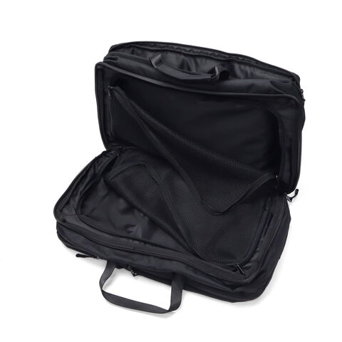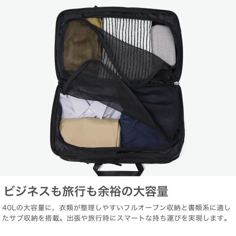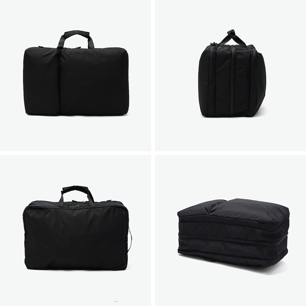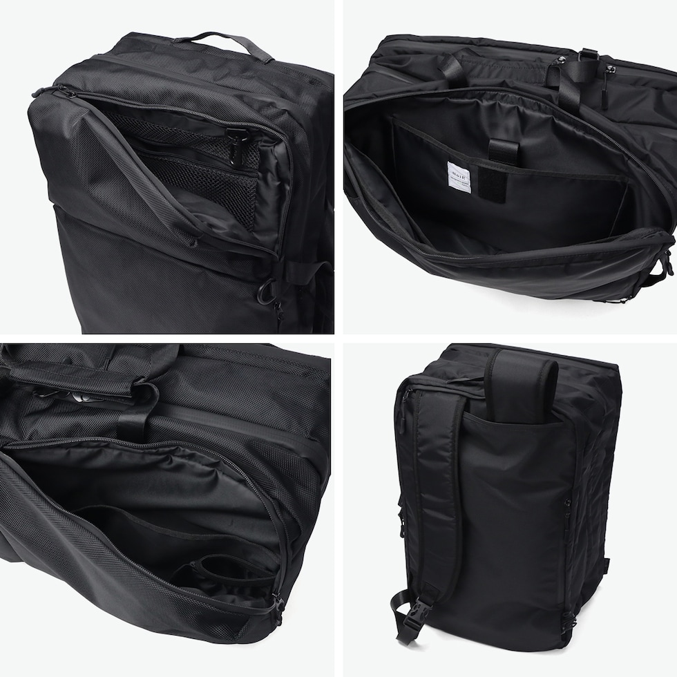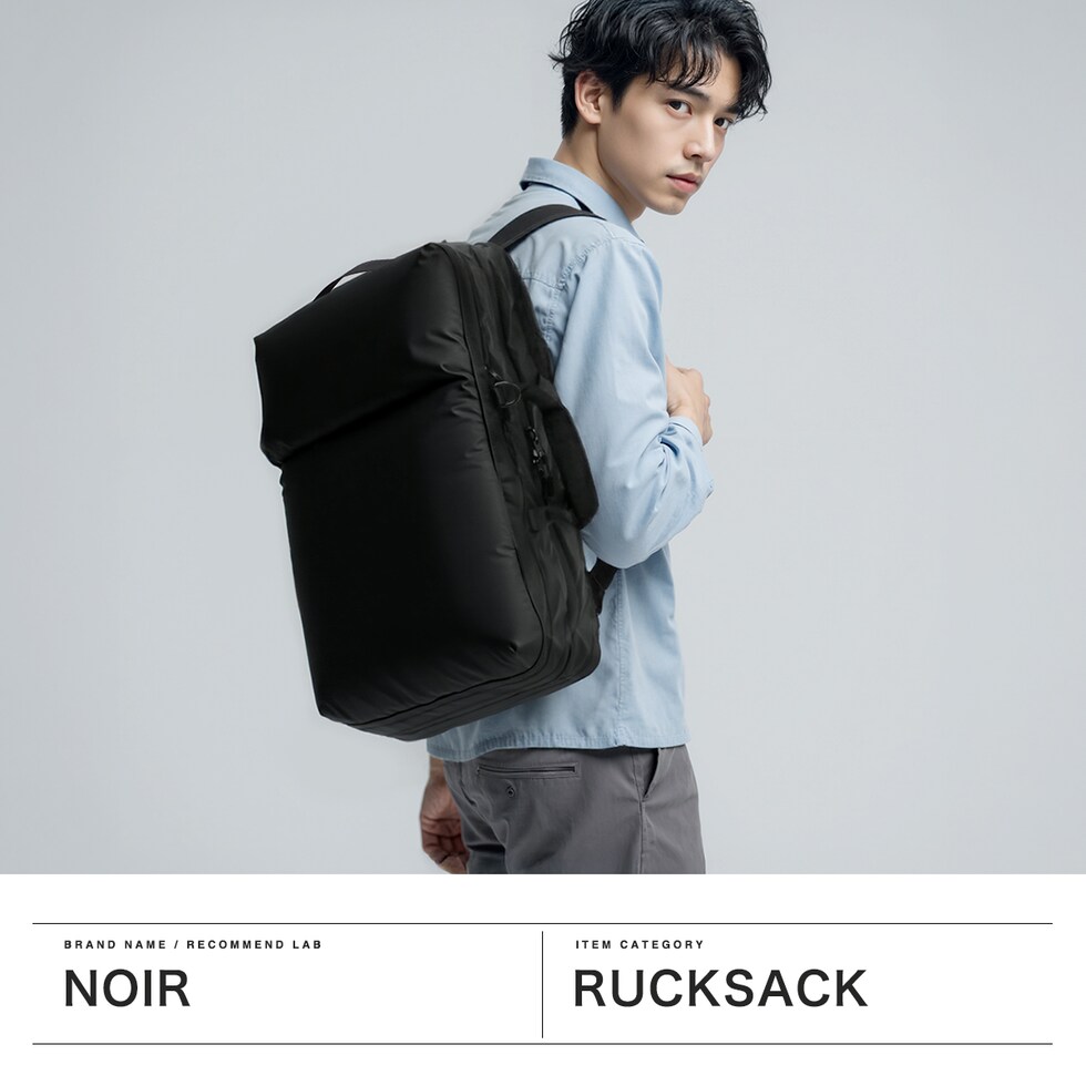 | 多彩な収納部を完備 出張時の衣類もおまかせ 洗練されたデザインとスタイリッシュな“黒”NoiRが特徴的なブランド『NoiR』の、衣類・ドキュメント・身の回りの小物収納スペースを設け、リュックでもブリーフバッグとしても使用可能なダッフルバッグです。素材は回収された廃棄ペットボトルを原料とした繊維糸を使った生地となり、環境に配慮した持続可能な物作りを目指しています。たっぷり容量を確保しつつ、軽量さもキープ。本体が軽いので荷物をしっかり詰めても負担になりにくい設計で、旅行や出張に最適のアイテムとなっています。 |