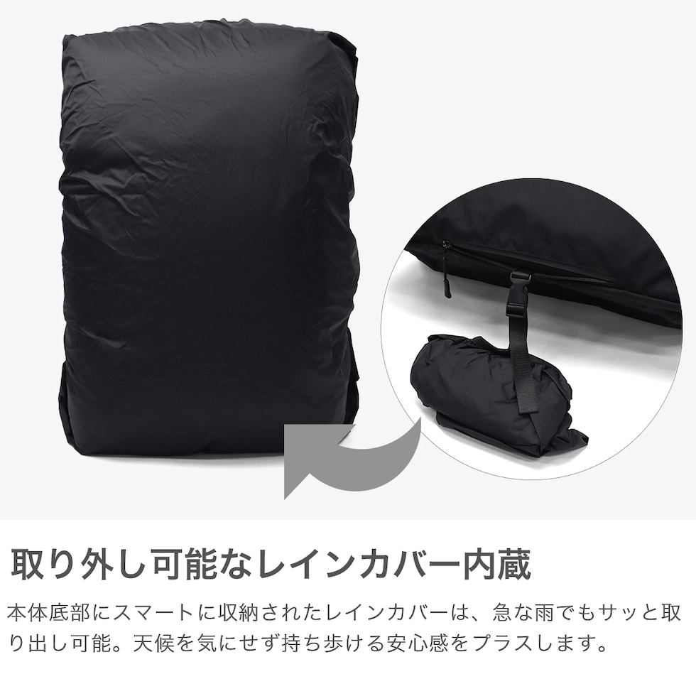 | 仕様 | <外側> ポケット×3 <内側> ポケット×7 ボトルホルダー×1 キーフック×1 <付属品> レインカバー×1 |