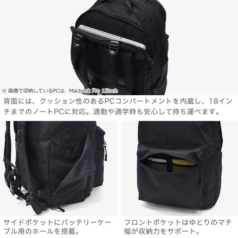 | 仕様 | <外側> ポケット×5 PC収納×1 <内側> ポケット×6 <付属品> レインカバー×1 |