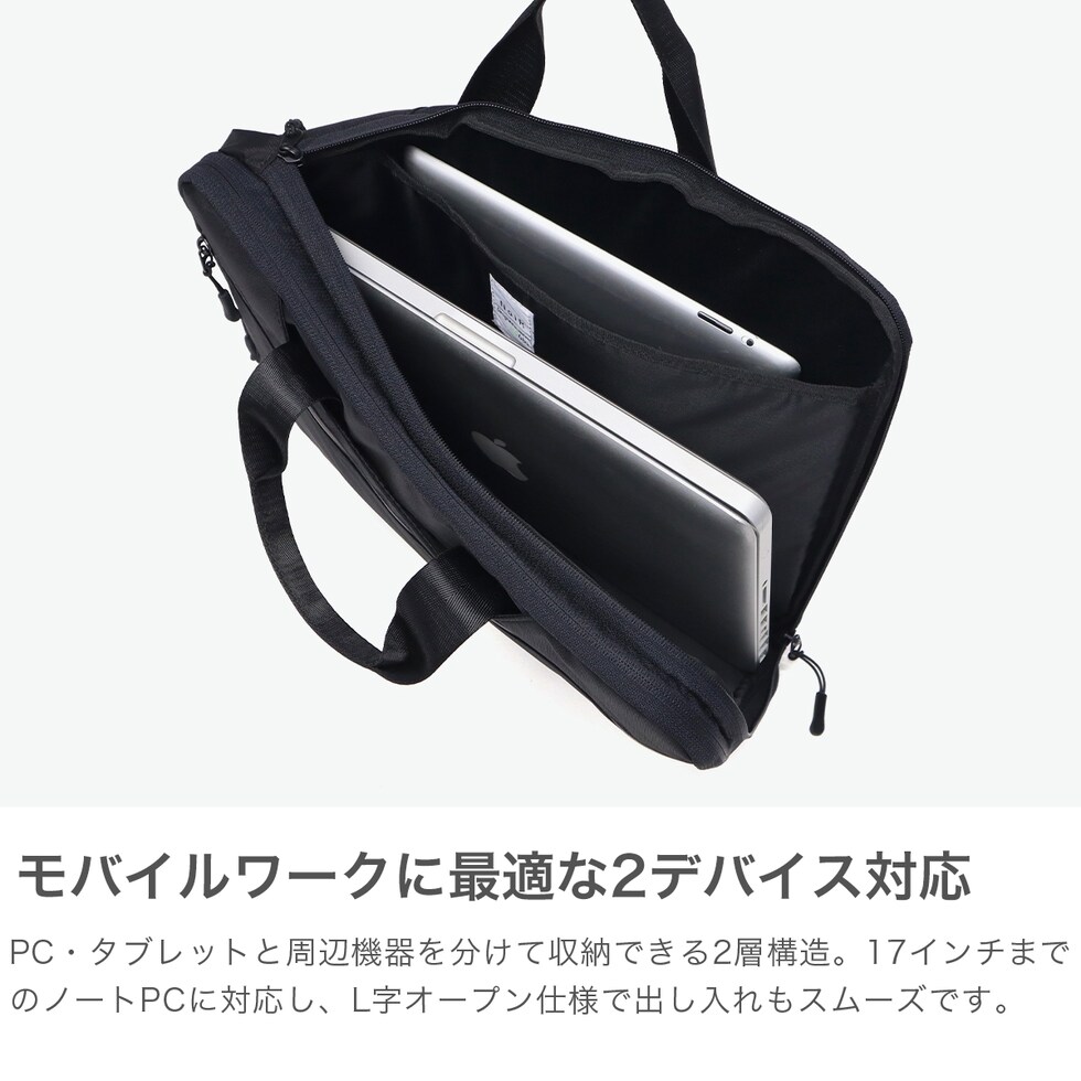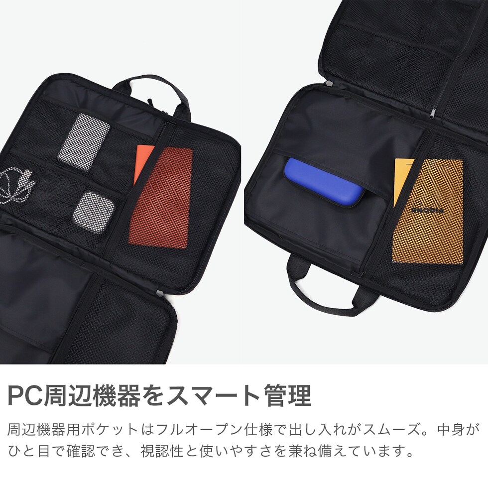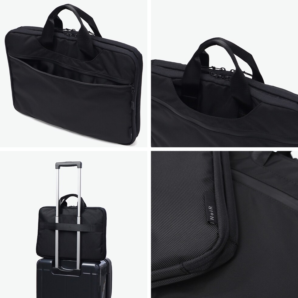 洗練されたデザインとスタイリッシュな“黒”NoiRが特徴的なブランド『NoiR』。PC・タブレット・周辺機器をスマートに仕分けできるブリーフバッグ型のPCケースです。豊富なポケットでビジネスツールを一括収納。バッグイン対応の格納式ハンドルや、キャリーオンベルト付きで出張にも最適。リサイクル素材を使用し、機能性と環境配慮を両立したアイテムです。