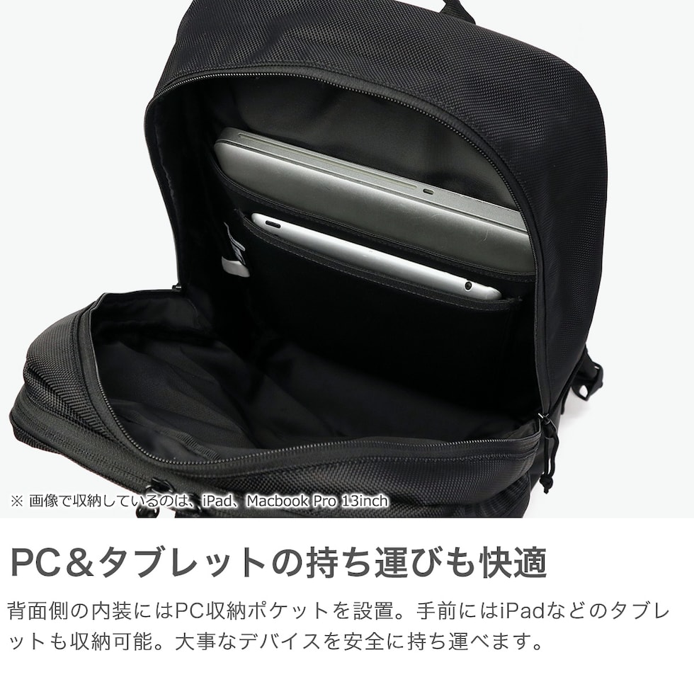 | 仕様 | <外側> ポケット×3 <内側> ポケット×5 PC収納×1 タブレット収納×1 ペンホルダー×2 キーフック×1 |
