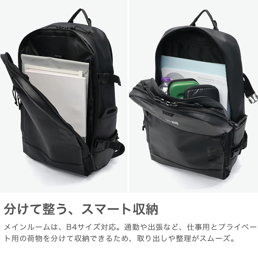 機能的バックパック 『NEW ERA』が展開するバックパックの中で中型サイズに位置づけさいれるスマートパック。スクエア型のシルエットを活かし、有効的に収納スペースを確保したモデルで、学生からビジネスマンまで幅広いユーザーに適したデザインとなっています。 |