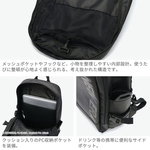 | 仕様 | <外側> ポケット×3 <内側> ポケット×4 PC収納×1 ペンホルダー×3 キーフック×1 |