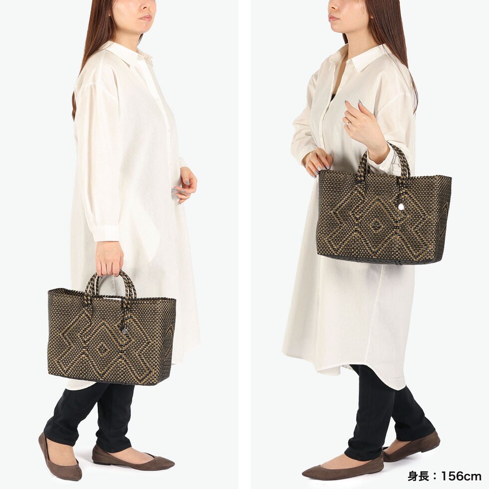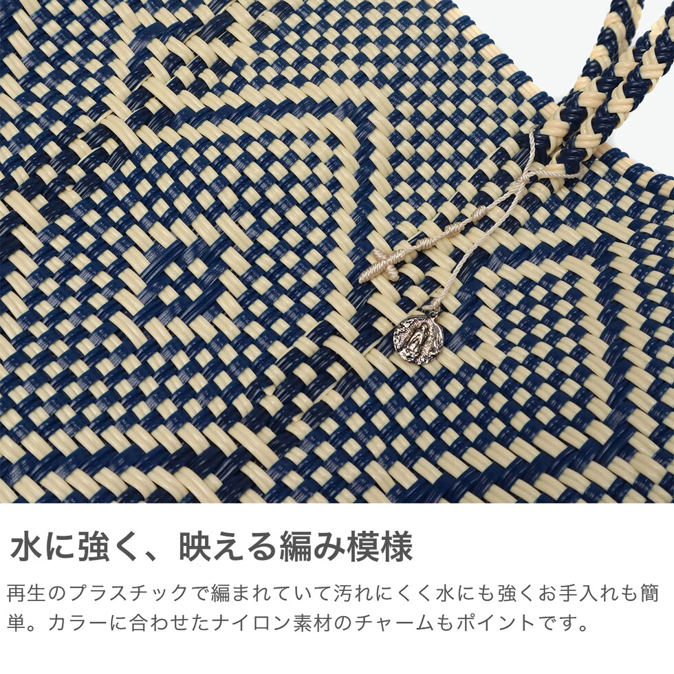 メキシコのエッセンスやカルチャーを盛り込んだ『OJO DE MEX/オホデメックス』のトートバッグ。プラスチックのコードを丁寧に編み上げ、軽く丈夫な仕上がりです。メキシコの市場でお買い物に使われる「メルカドバッグ」をモチーフにし、いつもと違った雰囲気のスタイルを楽しめます。