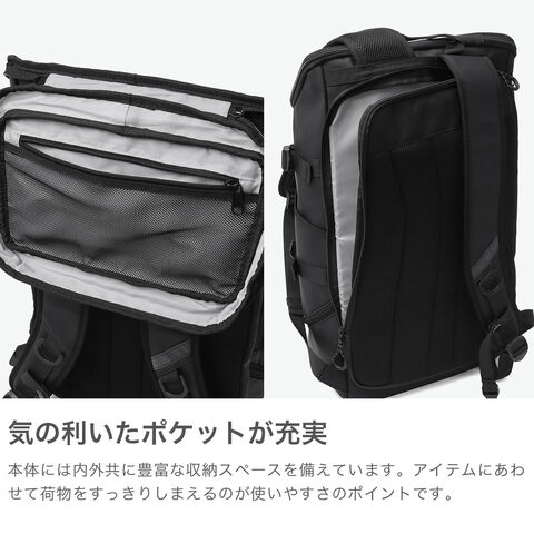 | 仕様 | <外側> ポケット×6 PC収納×1 <内側> ポケット×2 <付属品> チェストストラップ×1 |