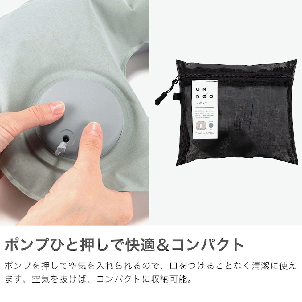 ONDOO ネックピロー ポンプ式 コンパクト 空気 飛行機 車 オンドー 軽量 軽い トラベルピロー トラベルネックピロー 折り畳み エアー 簡単 旅行 旅行用 トラベル 持ち運び可能 首まくら 首枕 TRAVEL NECK PILLOW NT011