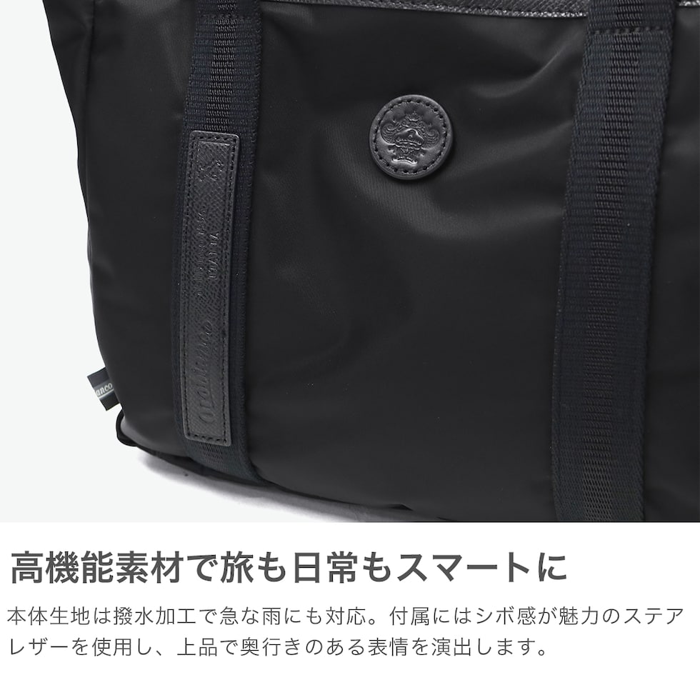 | 上質素材で仕上げた 機能派ミニトート 洗練されたデザインと高い機能性を備えた、トラベルシリーズ『VIAGGETTO』のミニトートバッグです。環境に優しいリサイクルナイロンと上質な牛革を使用し、軽量かつ撥水性にも優れています。ファスナー付きで安心感があり、ちょっとしたお出かけにもぴったりのサイズ感。旅先でも日常でも快適に使える、上品な逸品です。 |